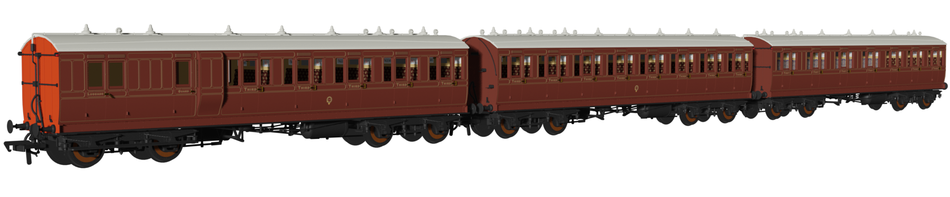 Rapido Trains UK 978201 'Evolution' 48' LBSC Mahogany Non-Corridor Carriage No.1236, 535 & 297 Triple Pack