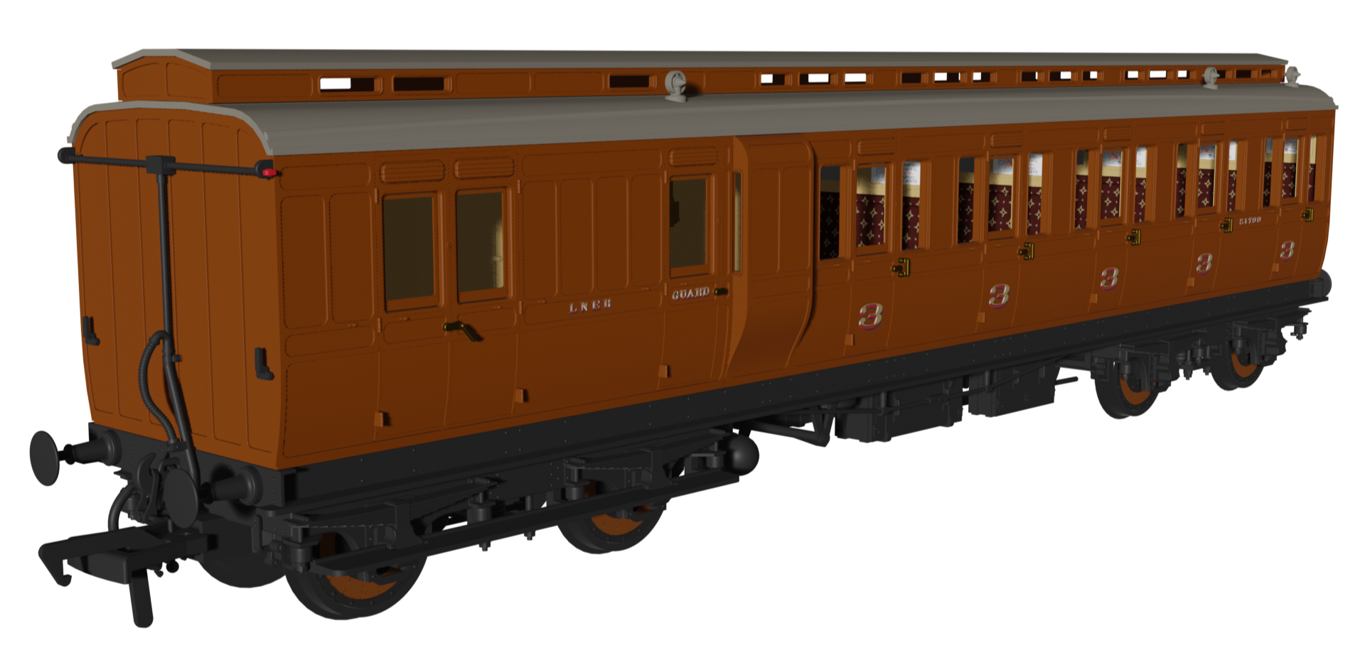 To complete the appearance of different gas and electric lighting fittings, the relevant models will feature separately fitted parts for battery and regulator boxes, a dynamo, roof-mounted gas lamps, plumbing, and gas tanks on the underframes.