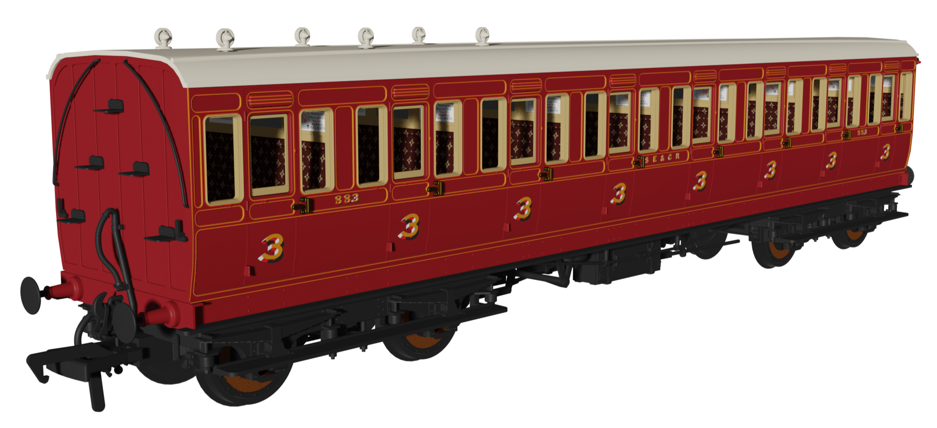 To complete the appearance of different gas and electric lighting fittings, the relevant models will feature separately fitted parts for battery and regulator boxes, a dynamo, roof-mounted gas lamps, plumbing, and gas tanks on the underframes.