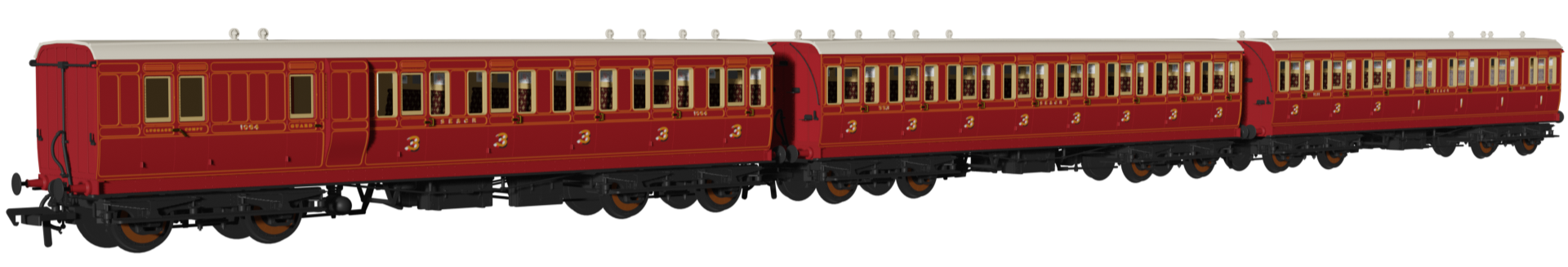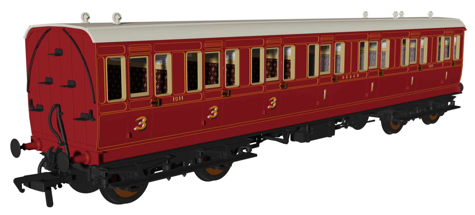 Rapido Trains UK 978914 'Evolution' 48' SECR Red Non-Corridor Carriage No.1064, 883 & 1011 Triple Pack