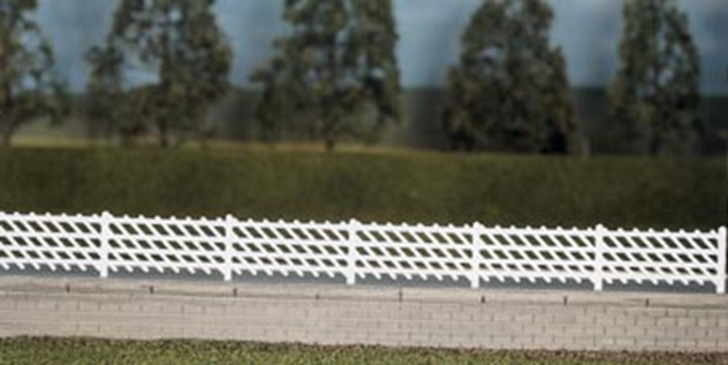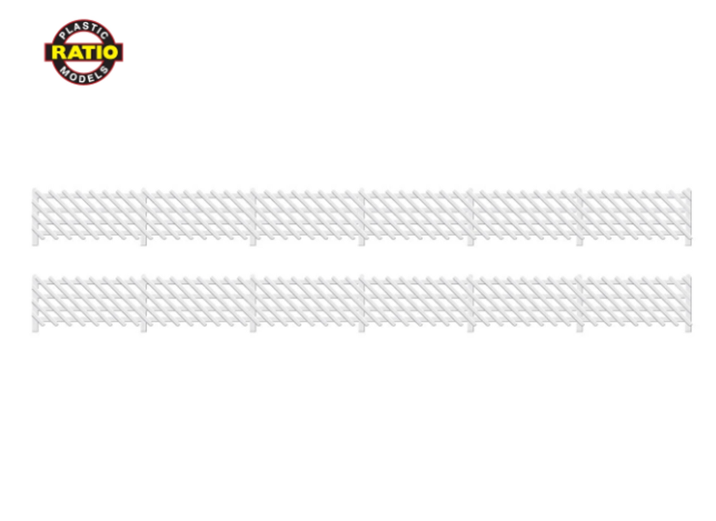 Supplied with pre-coloured parts although painting and/or weathering can add realism; glue is required to complete this model. This pack contains 680mm of classic Midland Railway diagonal style fencing fencing.