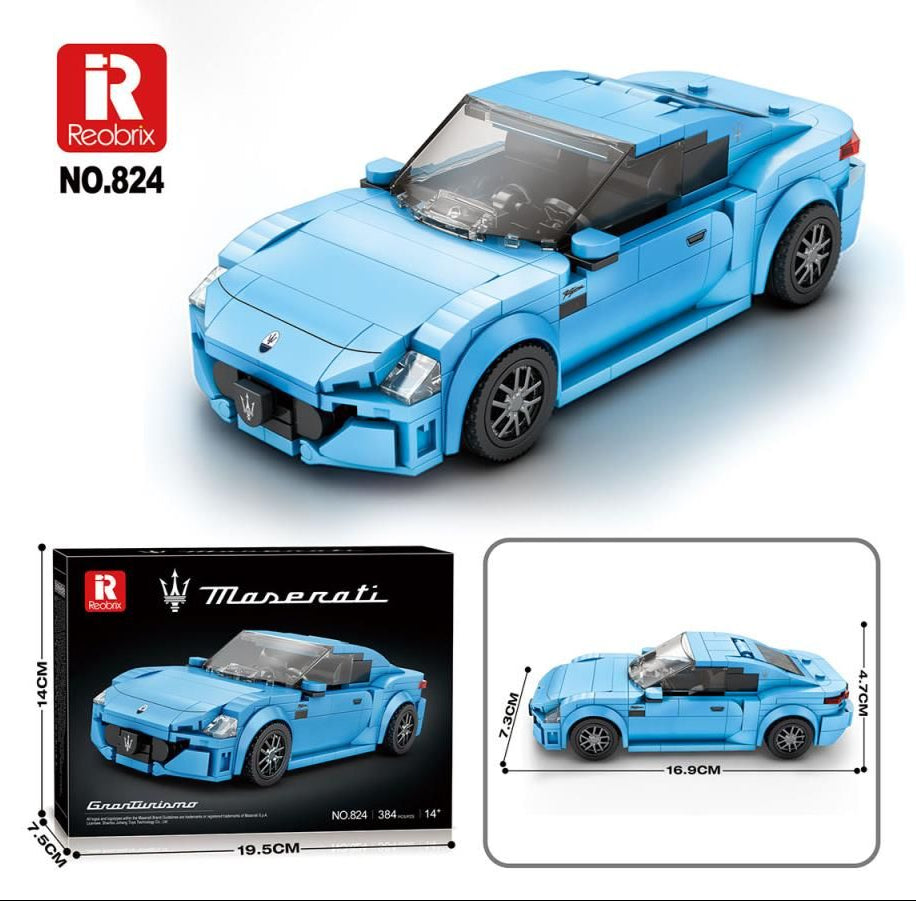 Reobrix 00824 Maserati Sky Blue Sports Car 384pc Construction Set