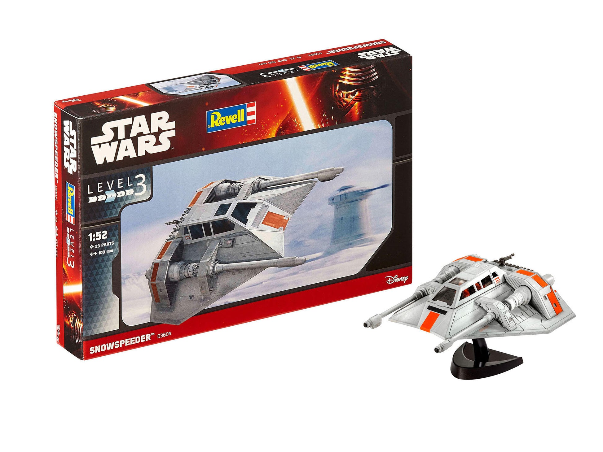 Snowspeeders are used by the Rebels to do battle on the icy planet of Hoth. Scale 1/52. 23 pieces. 10 cm length. For ages 10 and above.