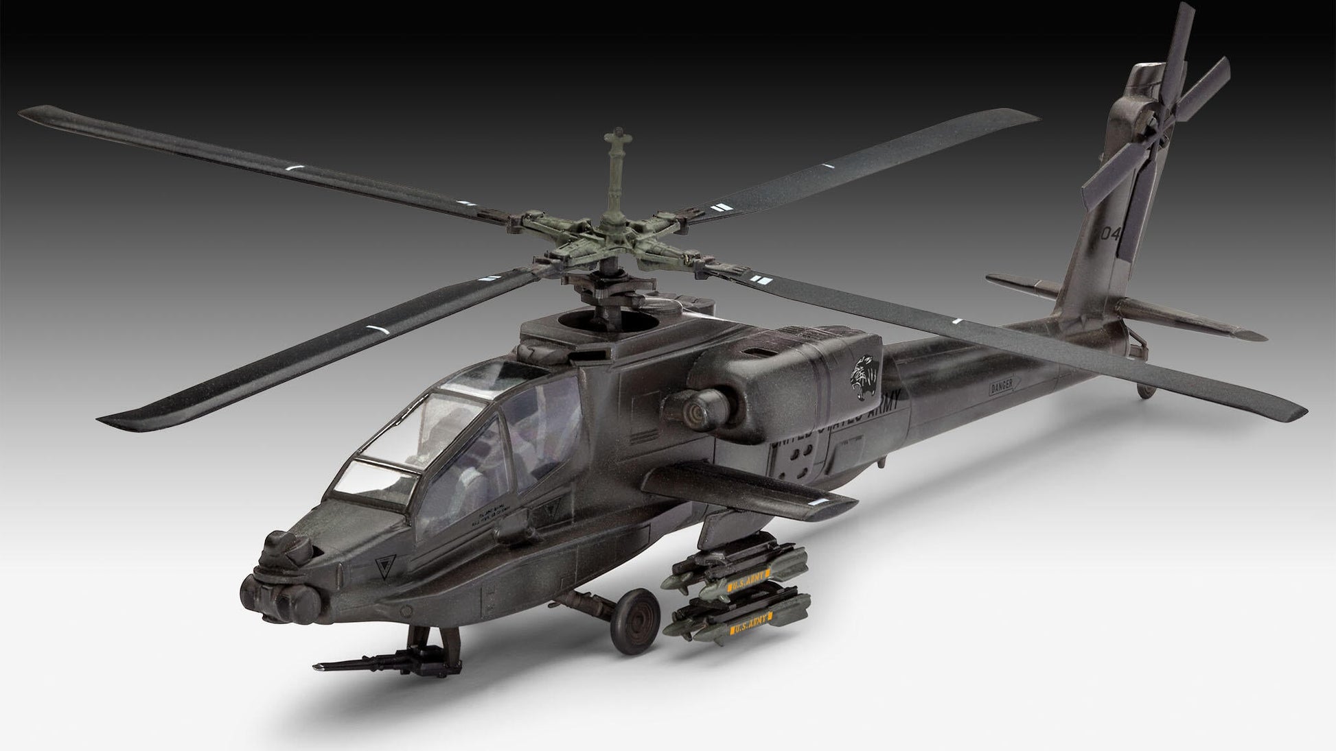 Easy-to-assemble model kit of the first mass-produced version of this cutting-edge combat helicopter. Scale 1/100. 56 pieces. 14.6 cm length. For ages 10 and above.