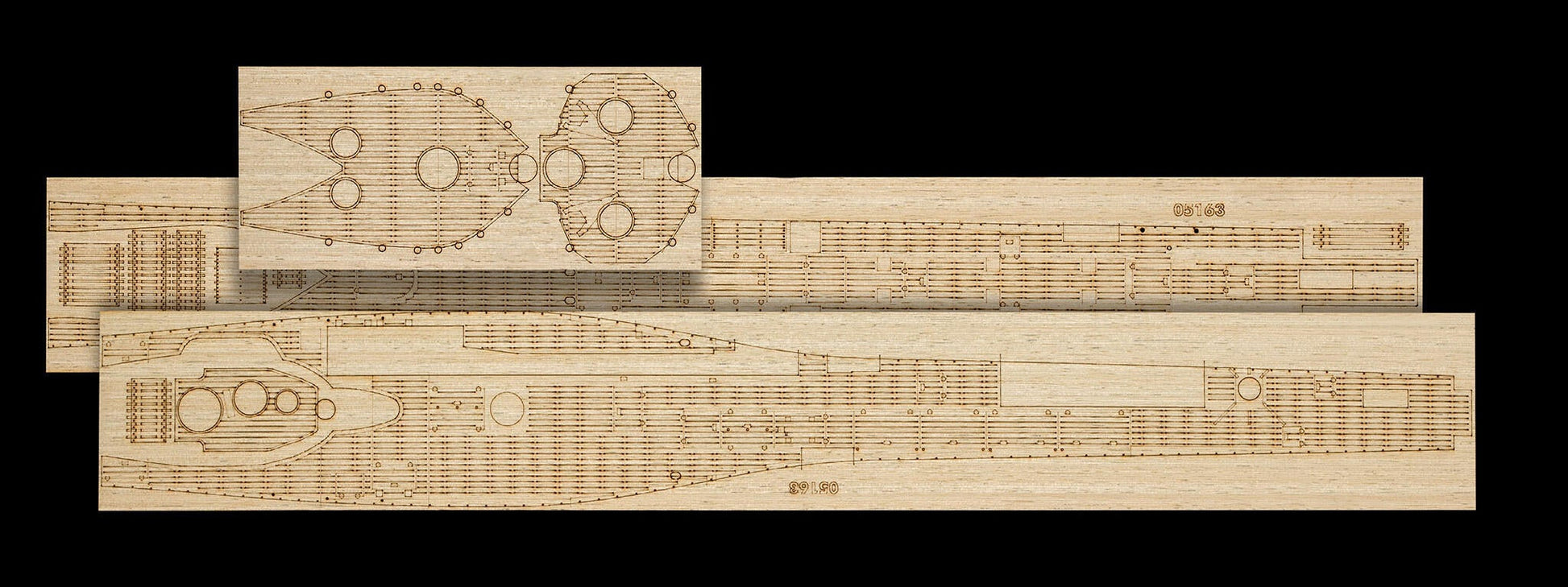 Plastic model kit (non-assembled) Illustrated, multilingual assembly instructions Decal set, Flag chart on paper Thread Photo-etched parts Metal tubes Self-adhesive wooden deck