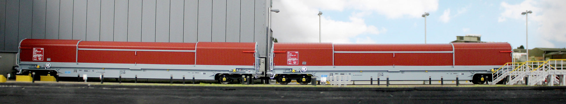 100 of these large vans were built for Rover Cars by Rautaruukki of Finland in 1995 to convey preformed car parts and completed sub-assemblies securely between plants. Coded KSA-A under TOPS, and nicknamed 'Cube' wagons, they incorporated full-length sliding covers as well as floors that could be raised and lowered to simplify unloading while optimising use of the restrictive British loading gauge. They were used between Swindon, Longbridge and other Rover plants. They were hauled by pairs of RfD Class 47s; after privatisation EWS class 66s, and occasionally 56s and 60s, were used.