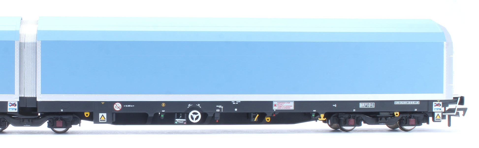 The articulation units have been designed to allow the model to comfortably negotiate R2 curves, and for added realism the customer will have the option, for the tail end car, of replacing the tension-lock coupler with a cosmetic air pipe, in either the loose or stowed position, and a control box moulding that clips into the NEM pocket to recreate the look of the real thing.