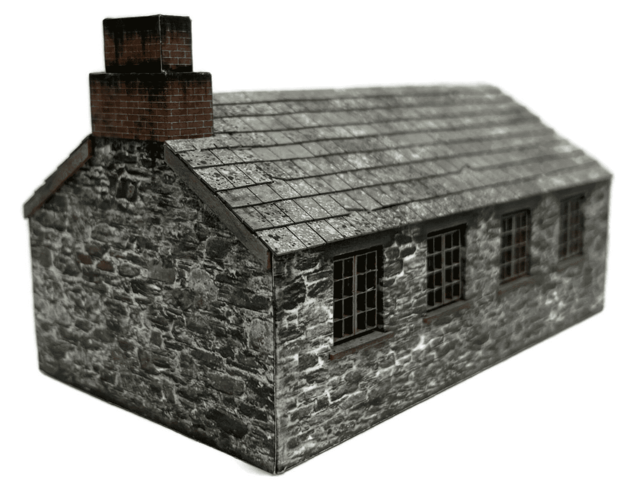 A versatile workshop / machine shop building suitable for industrial, mining, farm or railway use. The design is typical of many buildings of this type that can still be seen all over the British Isles, with stone walls, slate roof & brick chimney.