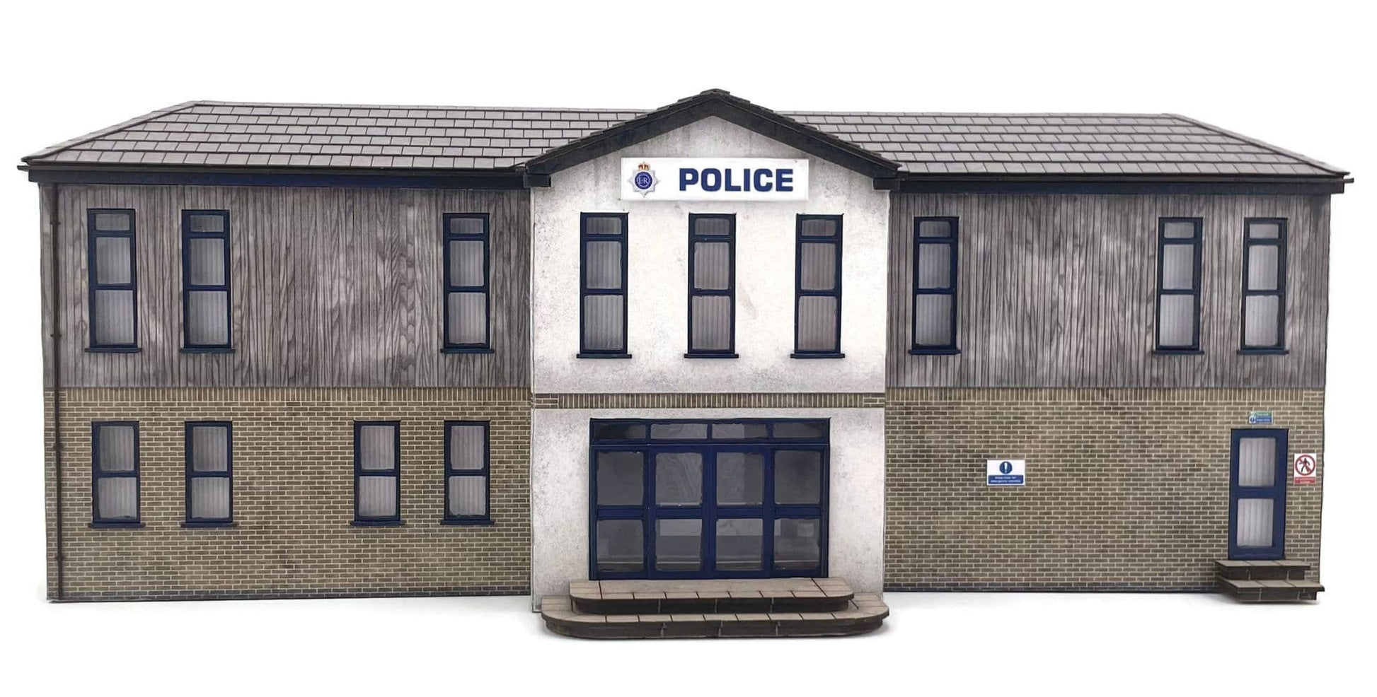 A versatile, low relief OO gauge / 1:76 scale modern image Police station, based on a real building near to our factory in Cornwall. A versatile design with straightforward assembly and lots of detail, this building will add detail and realism to any modern image street scene.