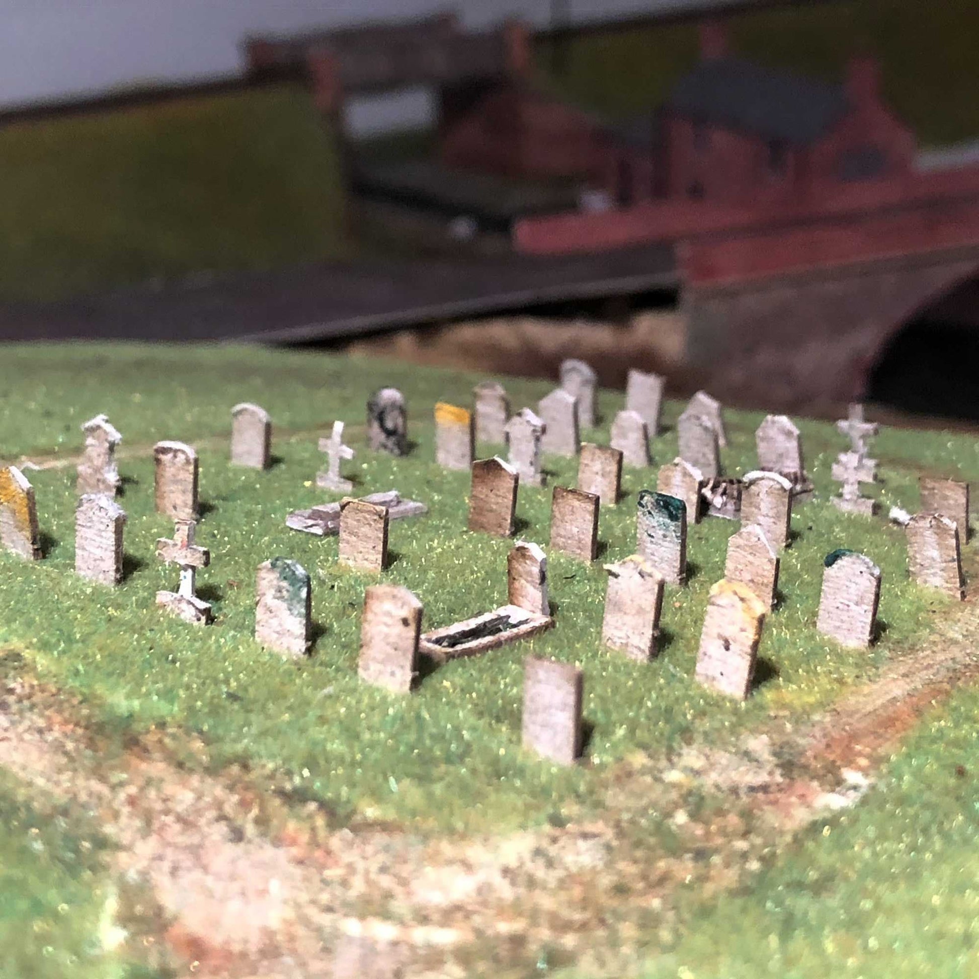 A pack of 58 laser cut & engraved OO gauge / 1:76 scale gravestones for detailing model graveyards & churchyards.