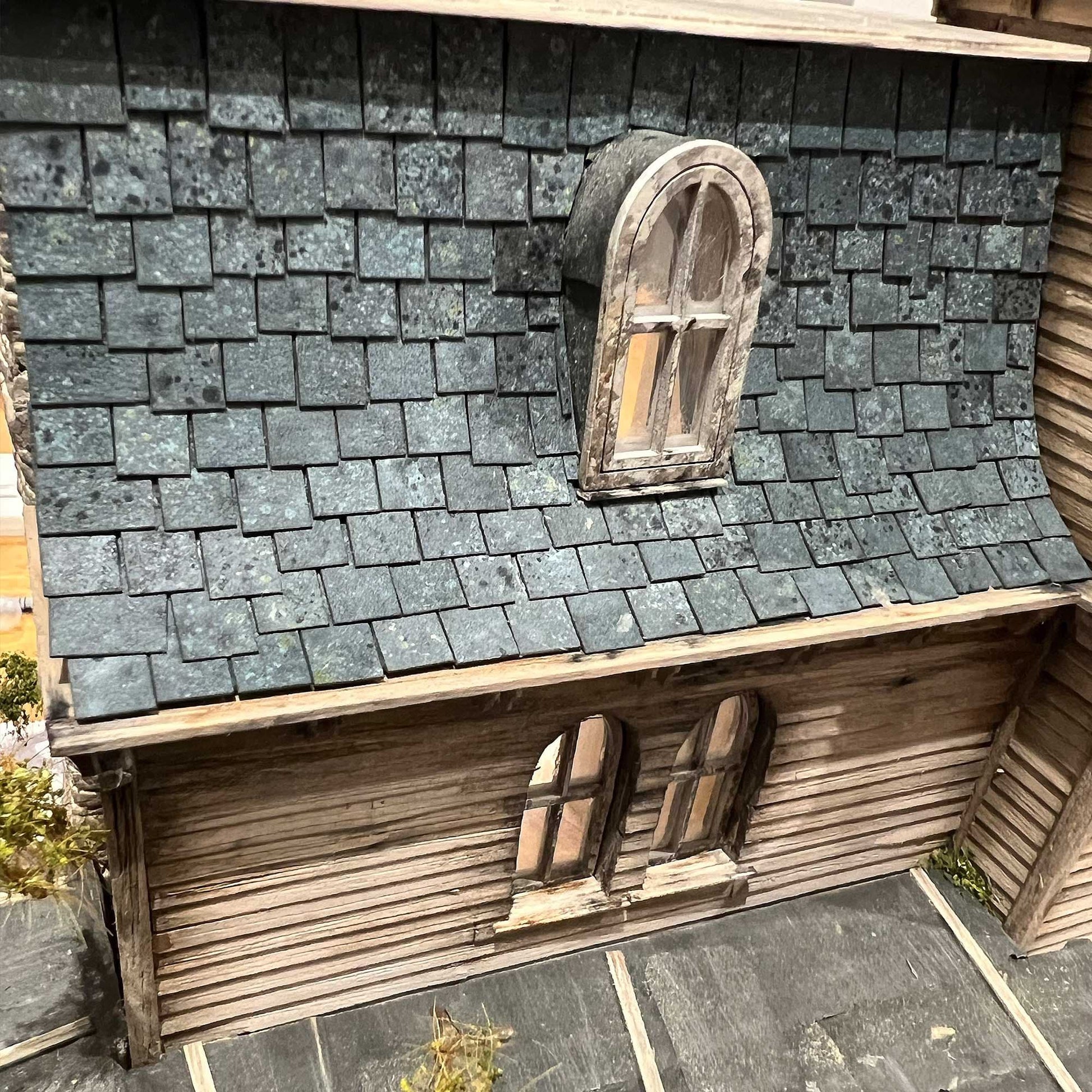 The easy way to create a realistic, weathered slate roof on your OO gauge & 1/76 scale model buildings! No painting required & include ridge tiles.