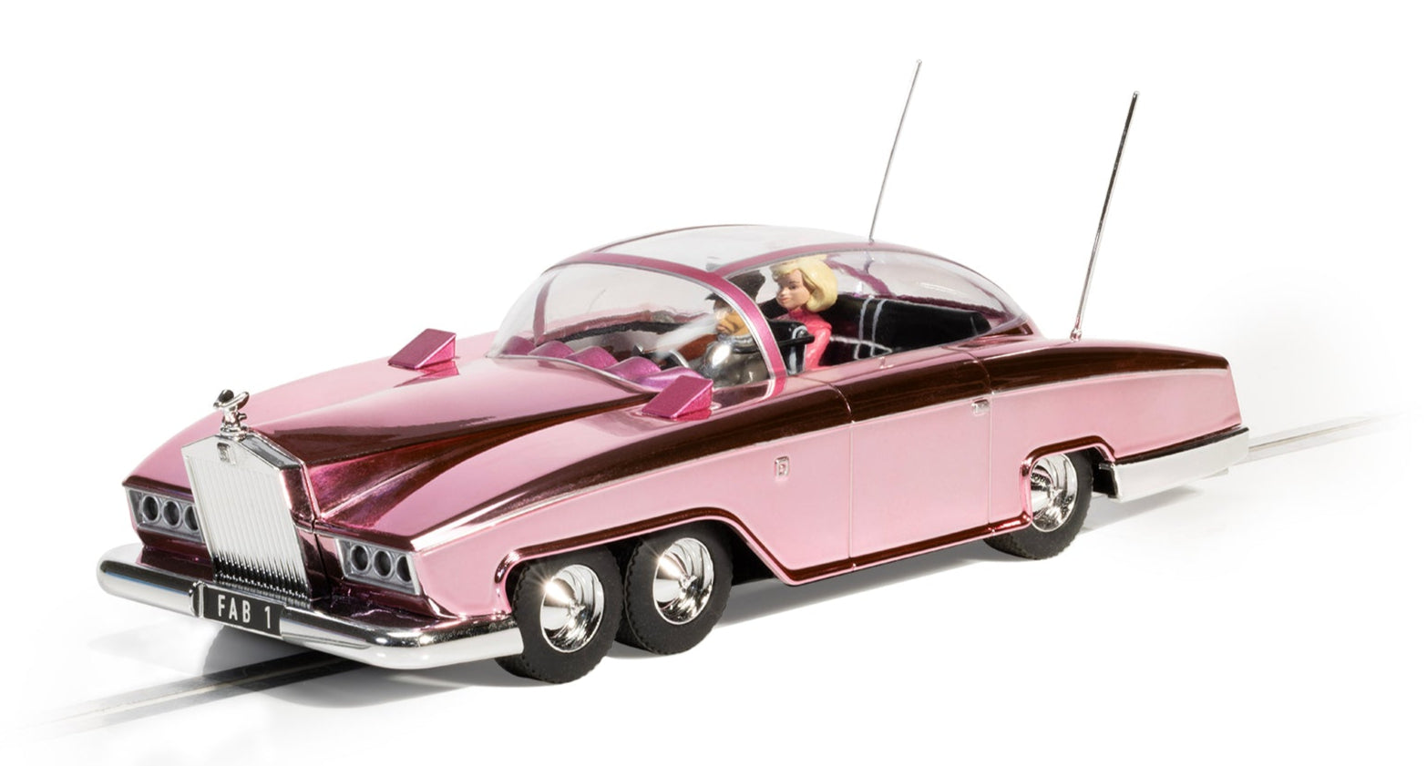 To celebrate 60 years of Thunderbirds, we’ve given Lady Penelope’s iconic FAB 1 a dazzling new look. This special edition Scalextric model comes in a striking chrome pink finish, making it a true collector’s piece.