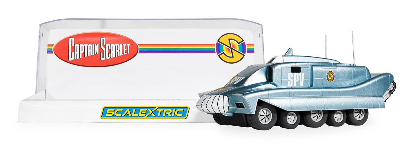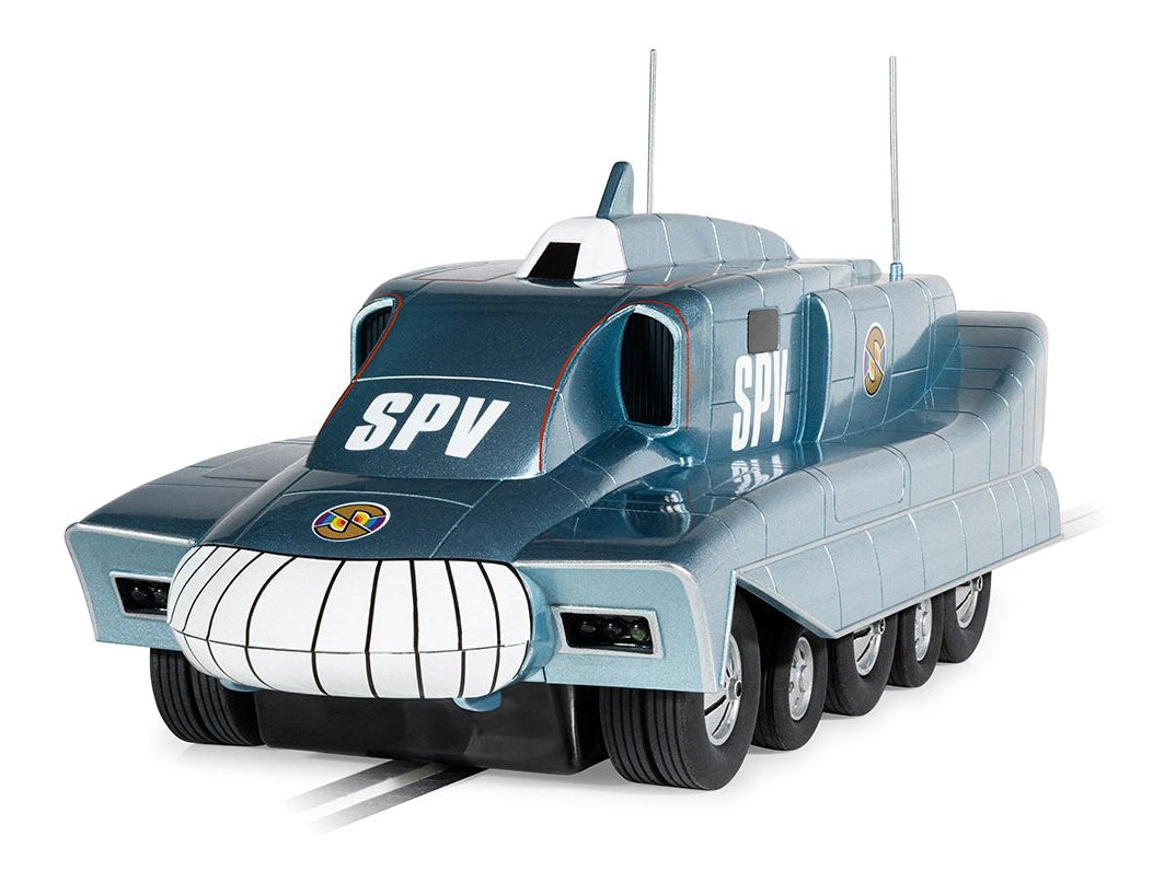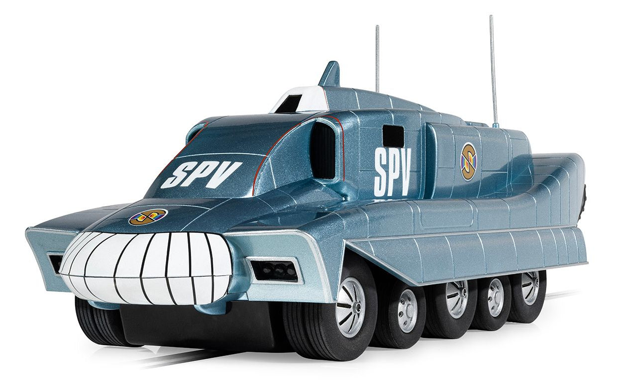 Enter the world of Spectrum with the iconic Spectrum Pursuit Vehicle (SPV) from the classic Captain Scarlet series. This armoured powerhouse, known for its futuristic design and battle-ready performance, is now available as a Scalextric model. With its sleek, menacing lines and unmistakable livery, the SPV was a key weapon in the fight against the Mysterons. Driven by Captain Scarlet and his team, this vehicle was always ready for high-speed chases and daring missions.