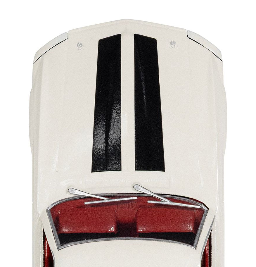 In the film the legendary 1969 Ford Mustang Fastback plays a key role — famously rammed into a tank during the epic pursuit. This model captures that drama with accurate body lines, sculpted fastback roof and race-ready stance.