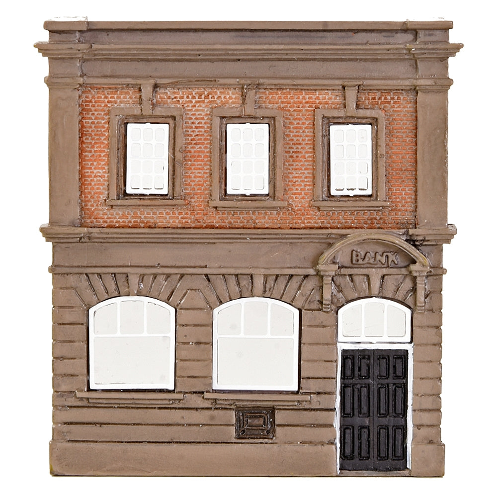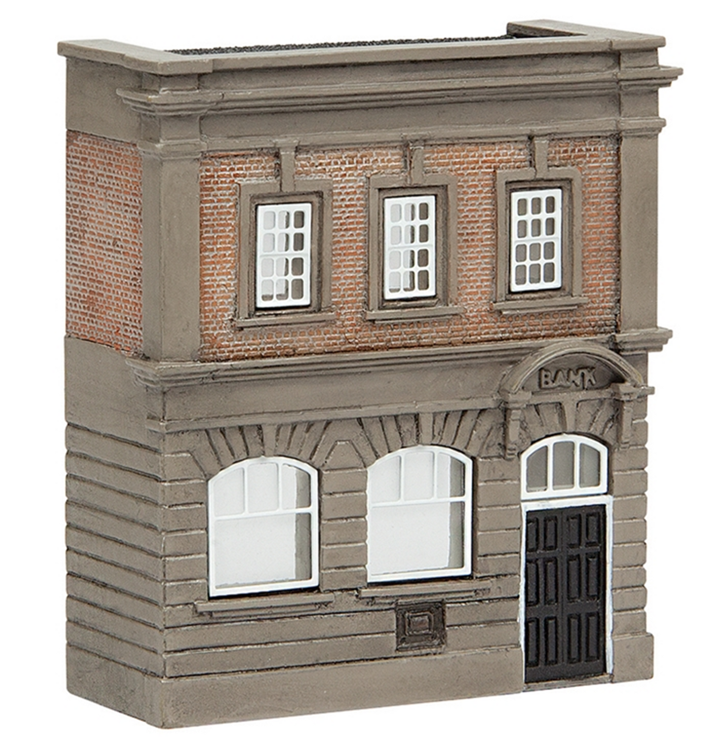 Your money will be as safe as houses in this little N scale bank, comprised of an embossed Victorian stone façade on the lower floor leading up to a brick upper storey. With glazed windows and guttering and drainpipe detail, this model is ready to be placed onto your layout right out of the box and we are sure this will make a wonderful addition to a street scene on any N scale layout or diorama.
