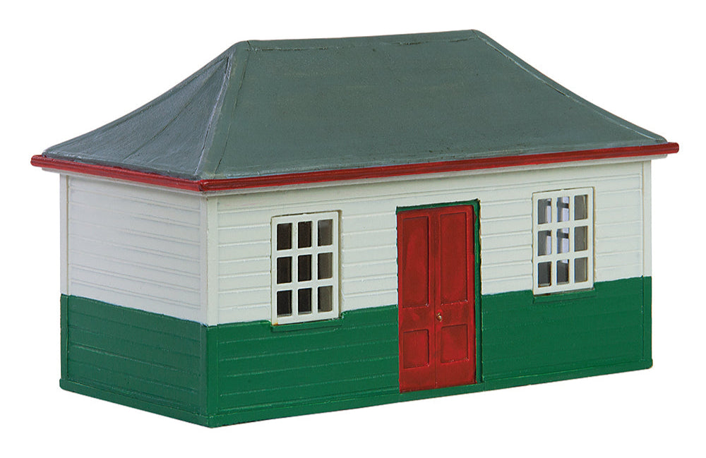 Railways such as the GWR and LSWR used pagoda buildings for several purposes including storage and as shelter for passengers on branch line stations. This Scenecraft model of a Wooden Pagoda Shed decorated in white and green with red highlights has a multitude of uses and so can find a home on most layouts.