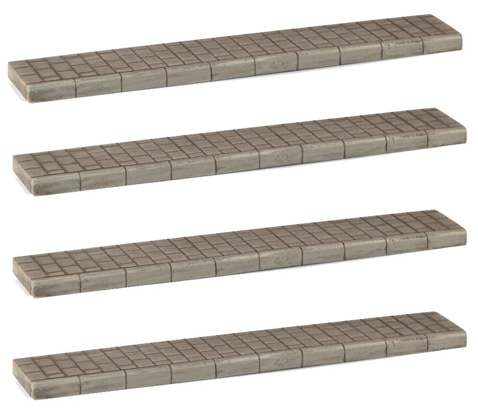No road or street is complete without a pavement and this pack of four Straight Pavements from Scenecraft allow you to model this everyday sight quickly and easily. Suitable for use on O and NG7 scale model railway layouts.