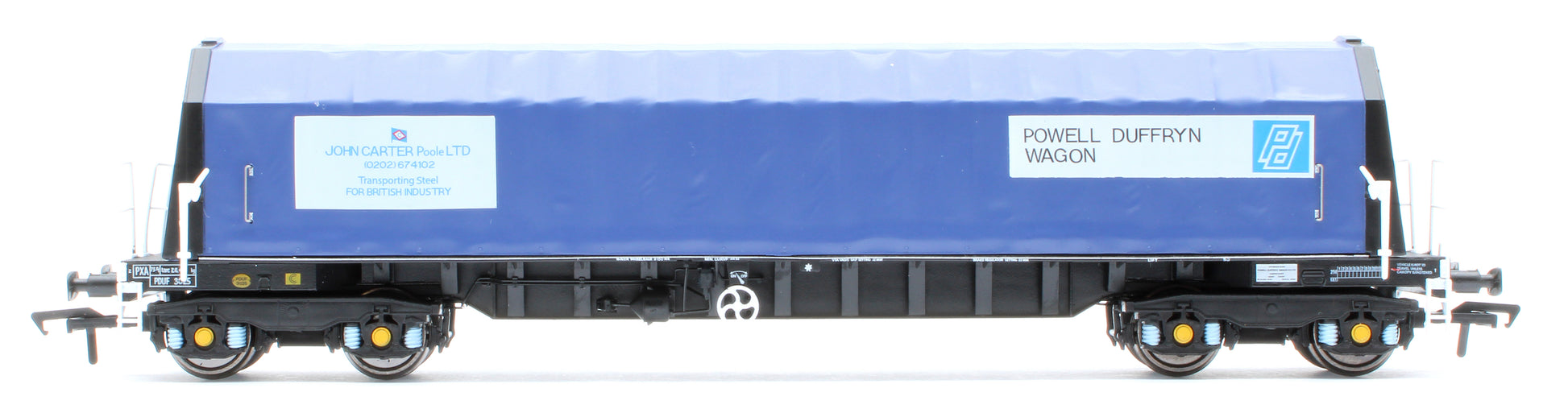 In 1986 Powell Duffryn started building a fleet of fifty-four (54), 101 tonne Gross Laiden Weight, Steel Coil Carrying wagons. These wagons consisted of a solid frame with a ribbed moveable tarpaulin cover to protect the product inside. The Floor of the wagon could house coils loaded eye to the sky or eye to the end depending on where the train was loaded and the destination for discharge. The 54 wagons gained the carkind code on British Rail’s Total Operations Processing Systerm or TOPS, as PXA with design codes of PX044A and PX044B. Powell Duffryn hired the wagons to British Steel to bolster its existing fleet of hired in wagons that the company had on long-term hire from VTG.