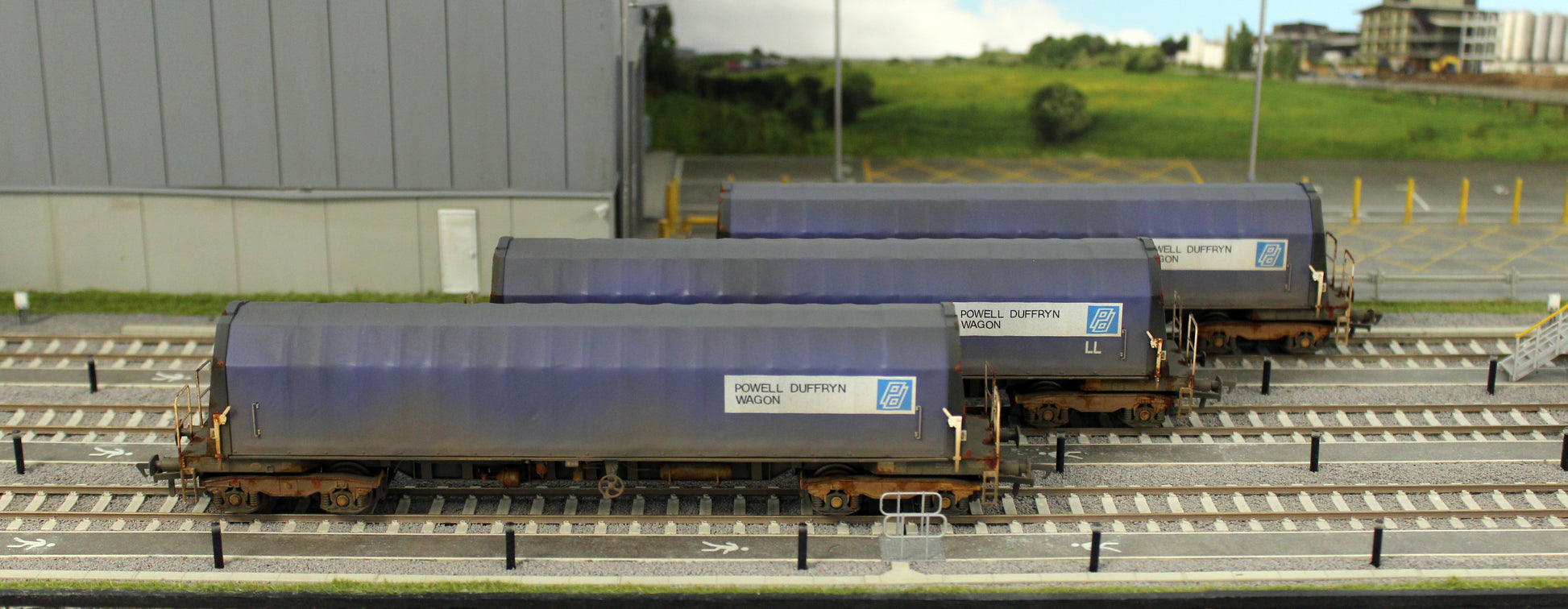 In 1986 Powell Duffryn started building a fleet of fifty-four (54), 101 tonne Gross Laiden Weight, Steel Coil Carrying wagons. These wagons consisted of a solid frame with a ribbed moveable tarpaulin cover to protect the product inside. The Floor of the wagon could house coils loaded eye to the sky or eye to the end depending on where the train was loaded and the destination for discharge. The 54 wagons gained the carkind code on British Rail’s Total Operations Processing Systerm or TOPS, as PXA with design codes of PX044A and PX044B. Powell Duffryn hired the wagons to British Steel to bolster its existing fleet of hired in wagons that the company had on long-term hire from VTG.