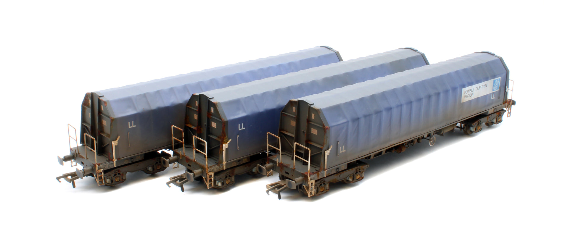 Cavalex Models PXA01 TP(C)W Set of 3 PXA Steel Coil Carrier PD Blue with LL Lettering No.3041/3051/3057 - Weathered