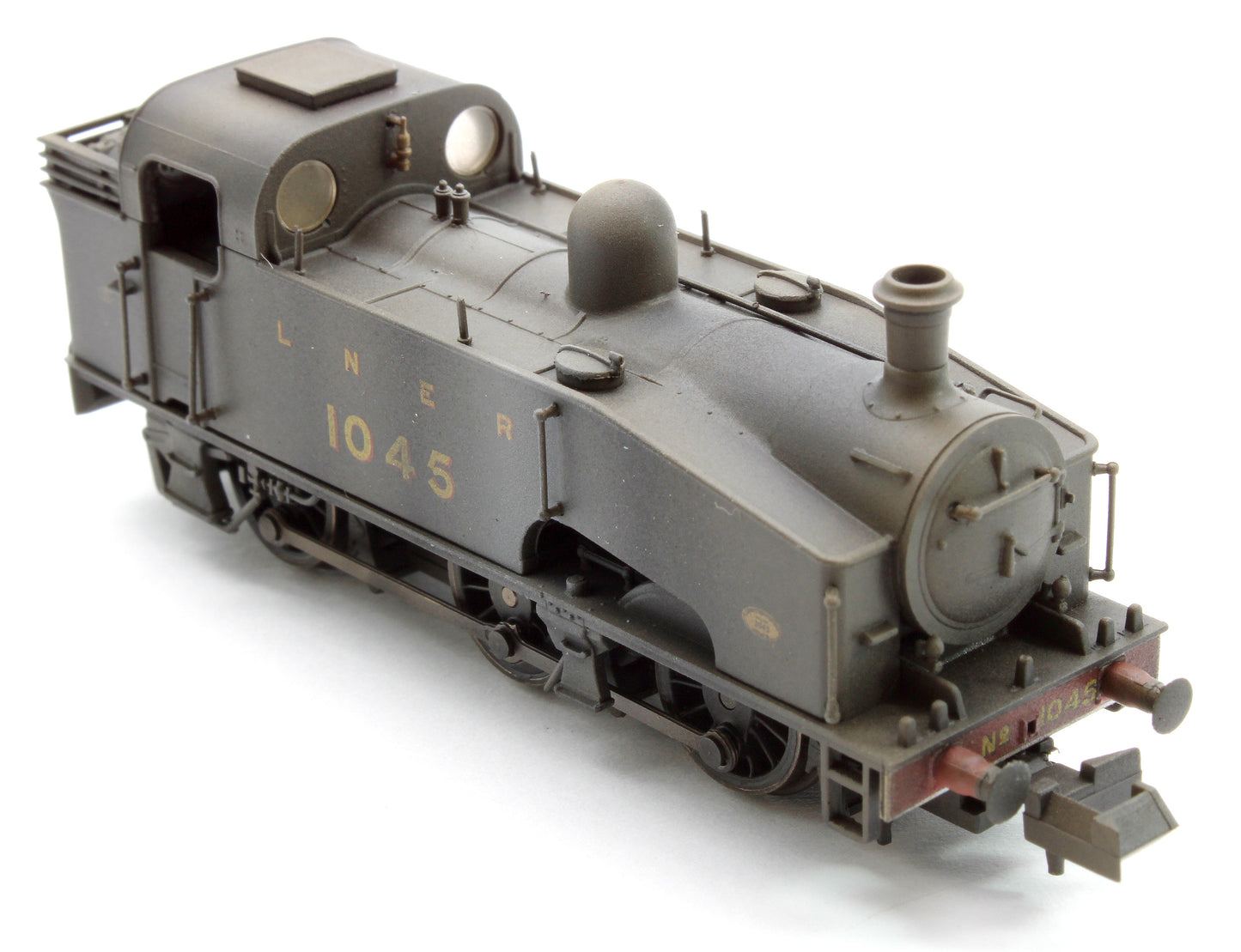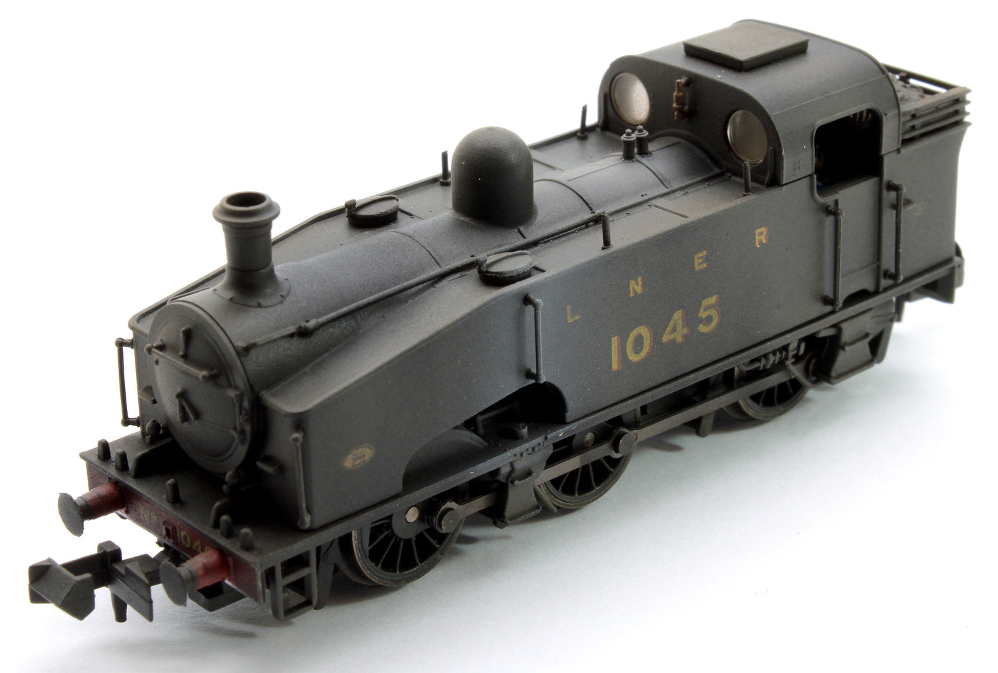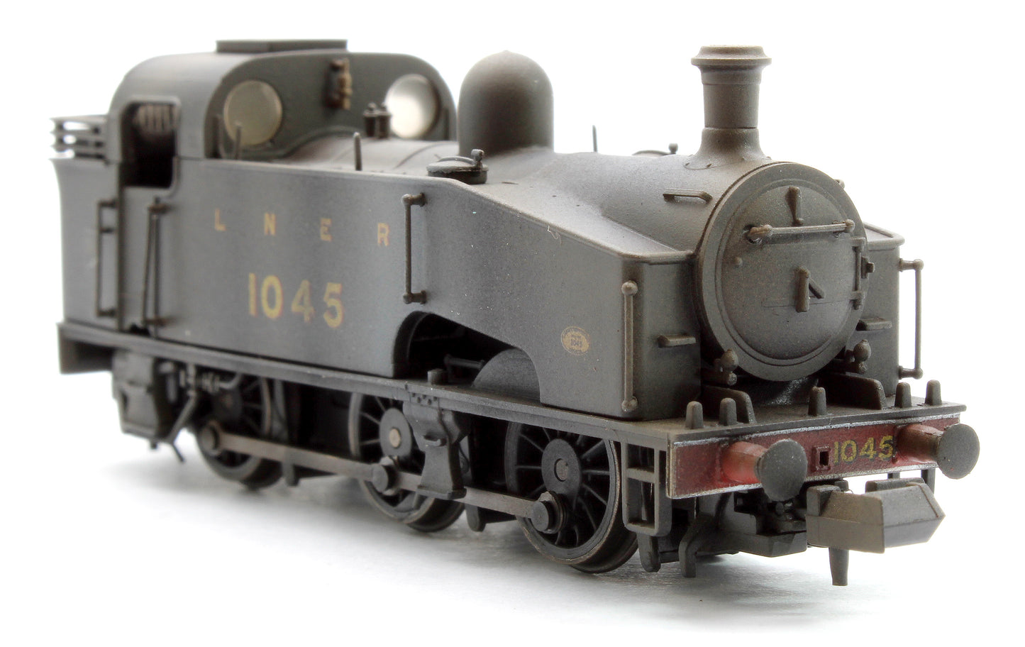 Version: 1045 in LNER unlined black. With GNR buffers, open coal rail, flush Ross pop valves and plain coupling rods.