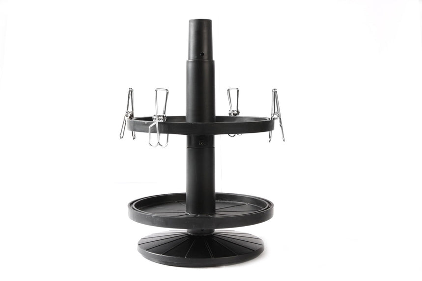 This compact paint jar stand features two rotatable circular shelves that enable convenient storage of either 14 jars of Tamiya Acrylic Paints or 18 jars of Tamiya Enamel Paints. The stand also comes with 4 alligator clips for holding small parts or securing painted parts while they dry. Overall height = 220mm