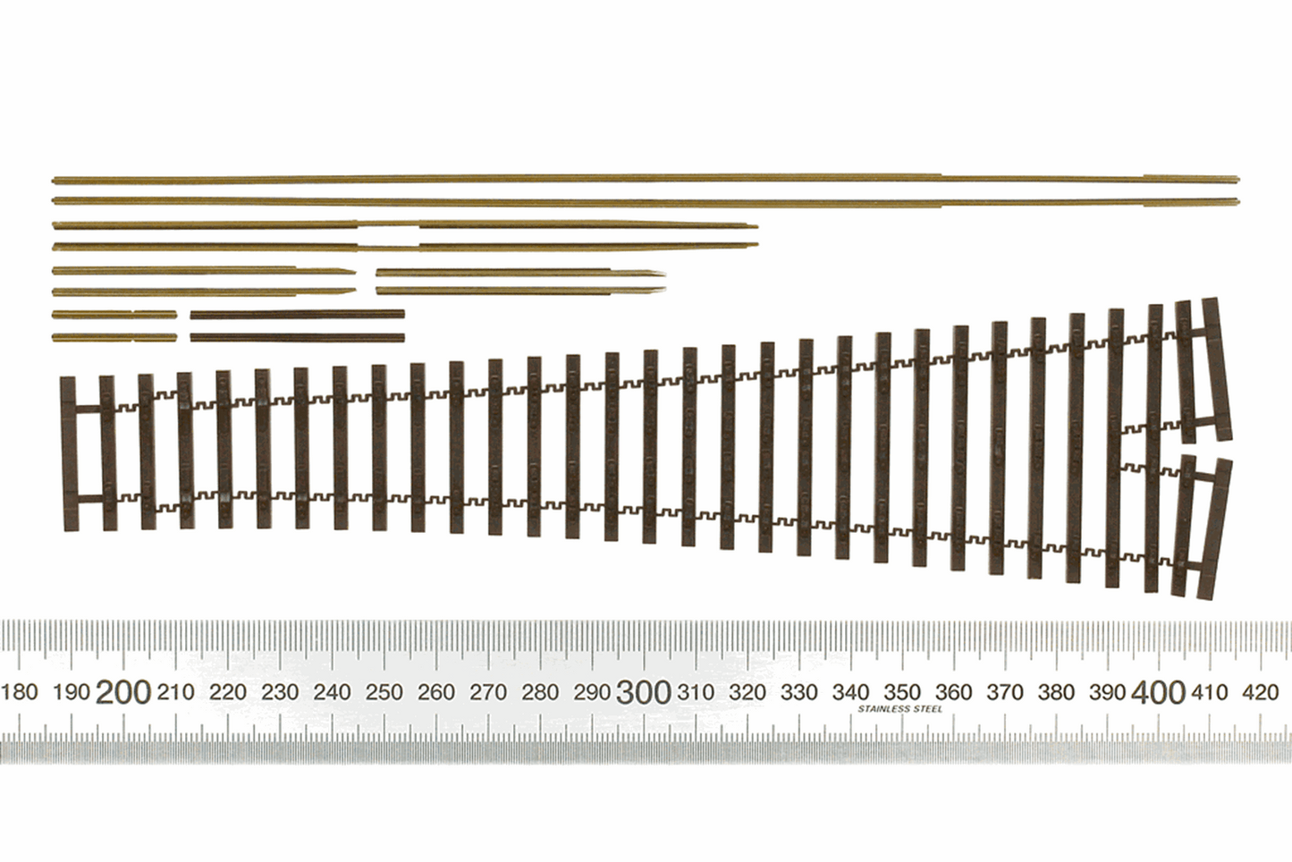 An easy to build kit of a nice gentle point that can be built straight or curved. Frog 11 degrees. Perfect match for all Tillig Elite trackwork of course!