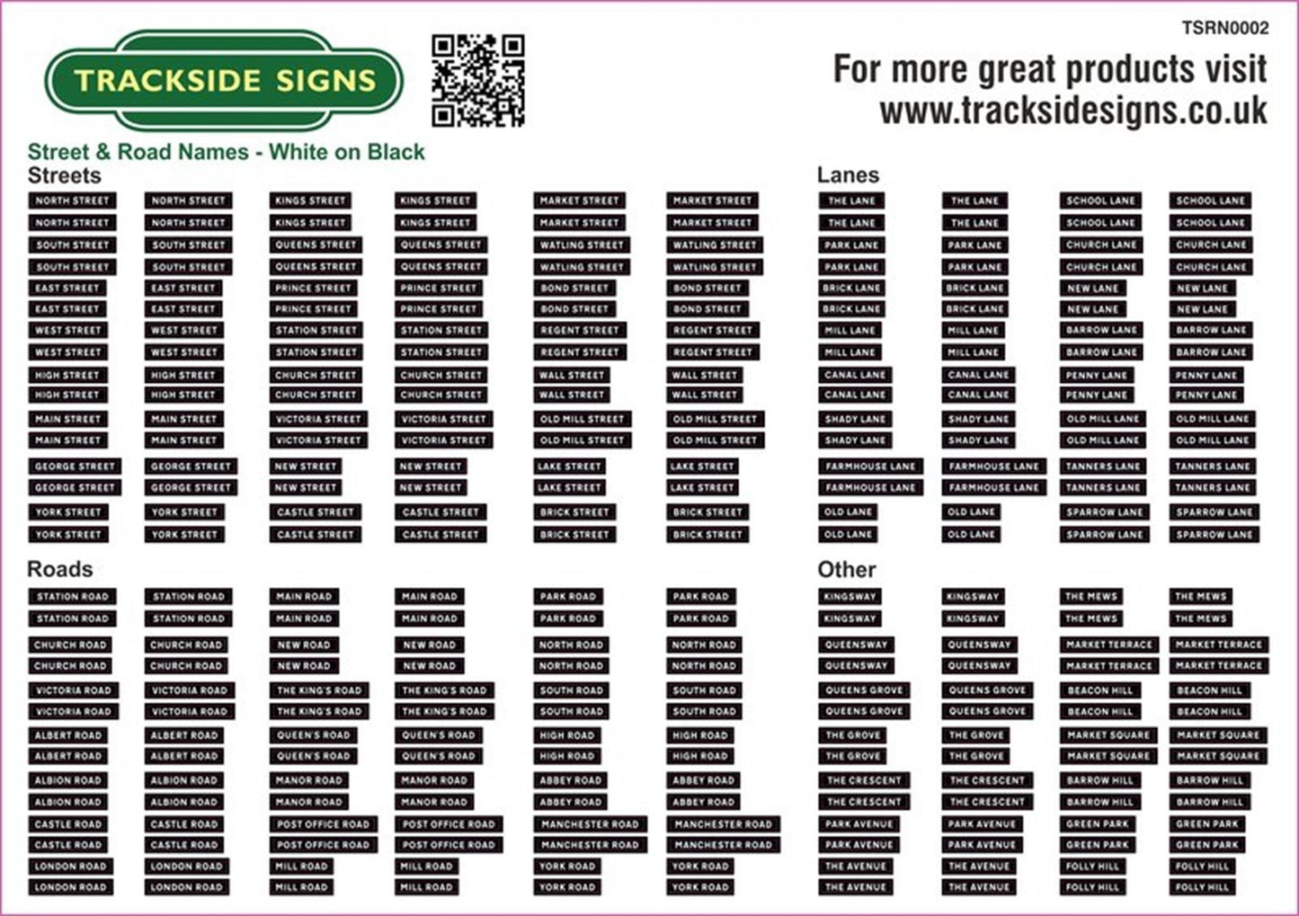 Trackside Signs TSRN0002 Die Cut Road Name Signs - White on Black