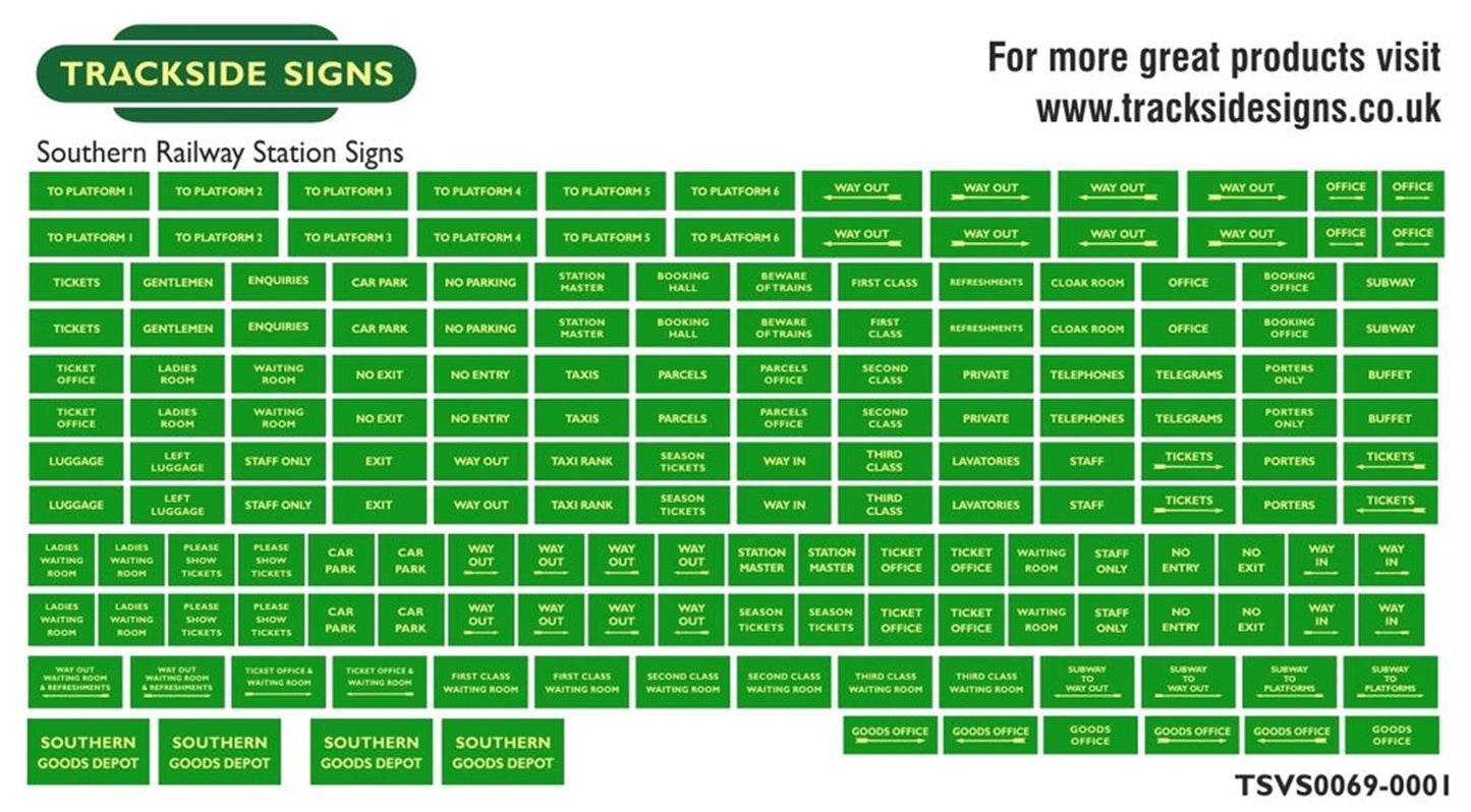 Trackside Signs TSVS0069-001 Die Cut Southern Railway Station Signs - Green & Cream