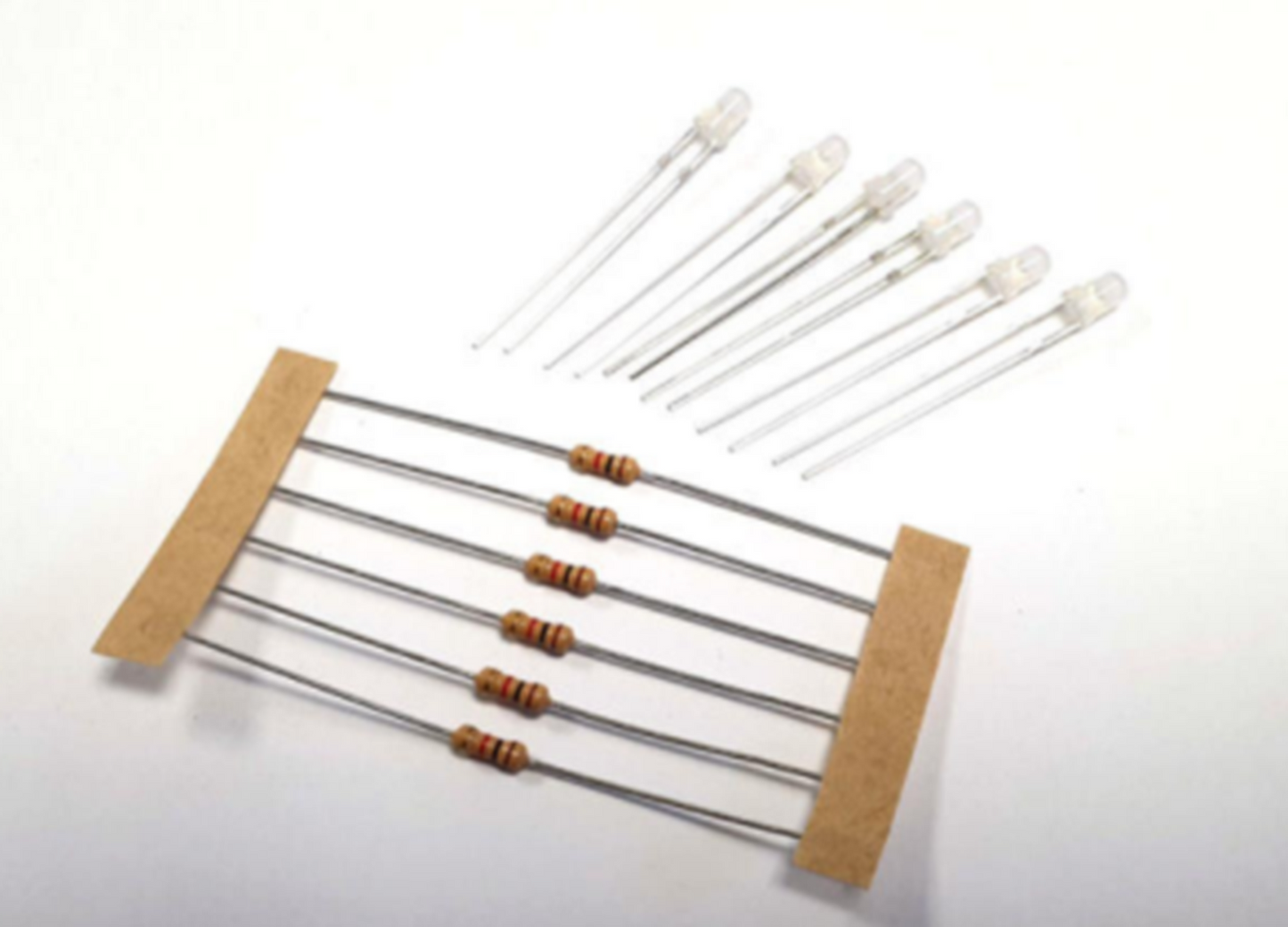 Pack of LEDs for use with the LFX series of electrical components. This pack includes 6 x 3mm LEDs and 6 suitable resistors