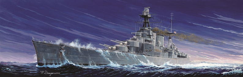 Admiral Class Battlecruiser • L: 749.4mm, W: 59.5mm, Waterline plate • 1:350 scale plastic model kit from Trumpeter, requires paint and glue