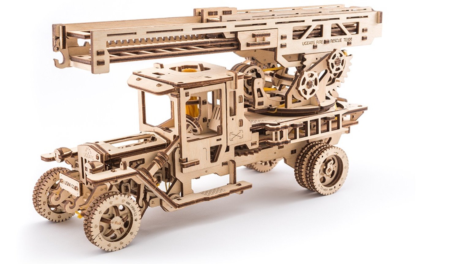 The Fire Truck is a self-propelled wooden model from the new UGEARS Trucks collection. Intelligent design mixed with smart engineering inside. The Fire Truck functions like a real Rescue& Fire Truck with turning foot, moving apart & ascending ladder, which transforms into real crane with hook.