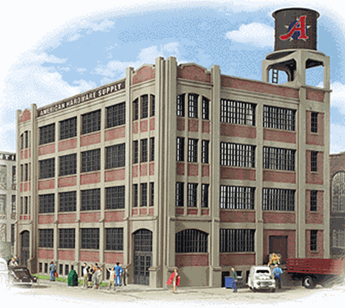 From the early years of the 20th century to the present, buildings like the Walthers Cornerstone American Hardware Supply have been a familiar part of big city skylines. Just about any manufacturing operation could be found here over the years.