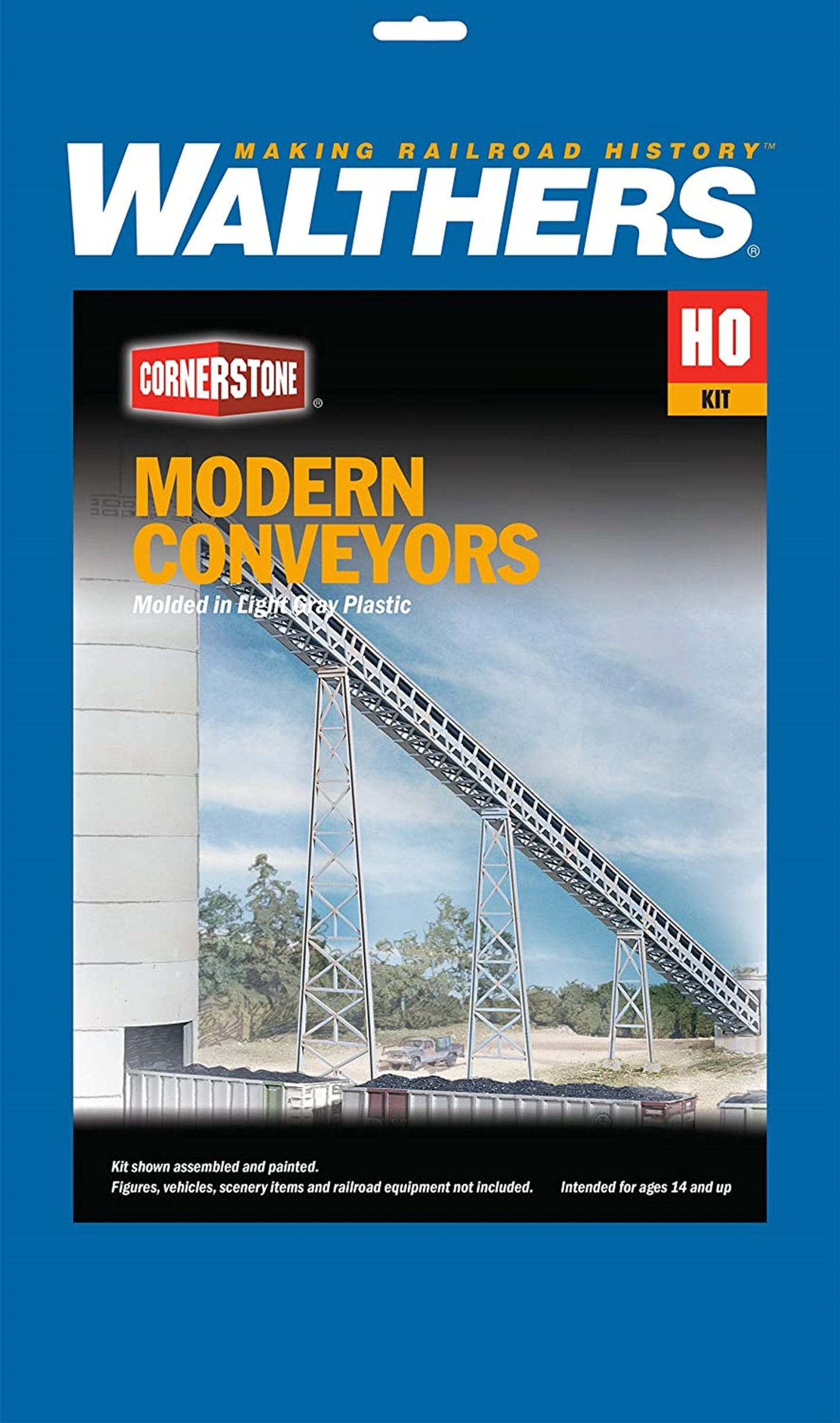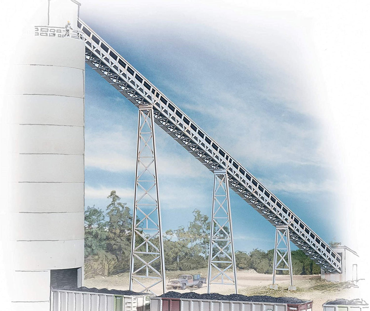 The Walthers Cornerstone HO Scale Modern Conveyor kit makes it easy to extend your flood loader's conveyors to a distant mine or crusher.