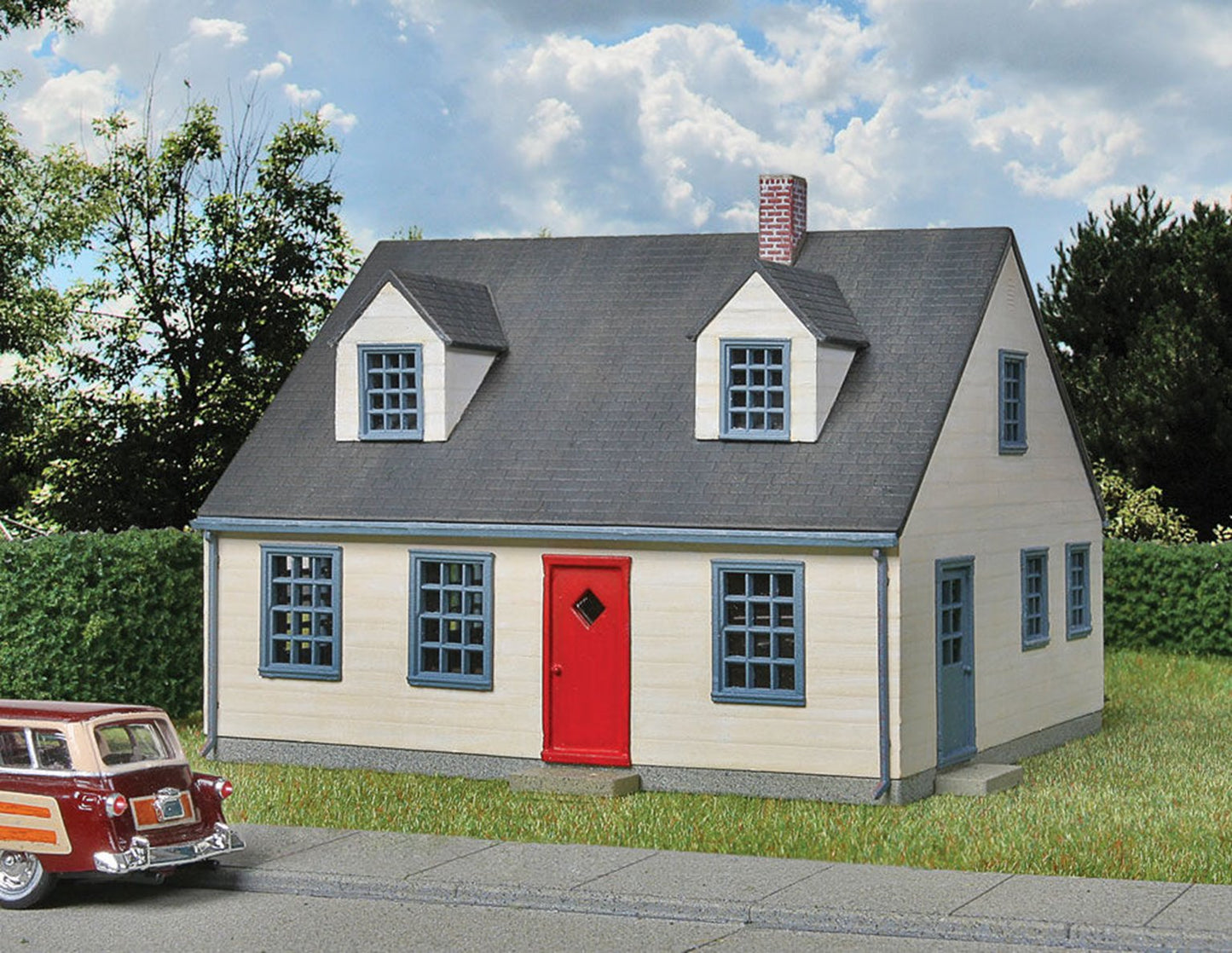 Plastic kit of a small 2 story house, This kit features embossed walls, clear glazed windows and a detailed embossed roof.