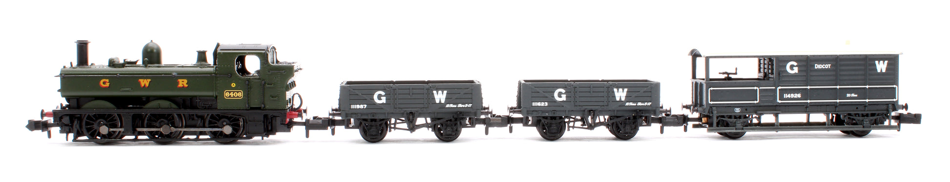 Rail was the preferred method of transport for much of the twentieth century and each railway company developed locomotives and wagons to move many types of freight. For the Great Western Railway, few tank locomotives were more revered than the 0-6-0 Pannier Tanks, whilst the ‘Toad’ Brake Van was an essential vehicle to bring up the rear of any goods train. Our Western Rambler Train Set includes both of these iconic designs, along with two open goods wagons.