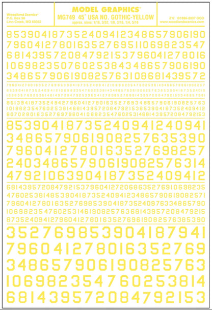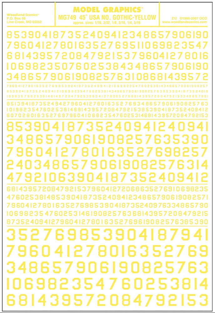 Woodland Scenics WMG749 45° USA Gothic Numbers Yellow