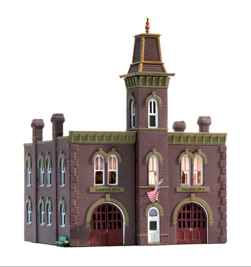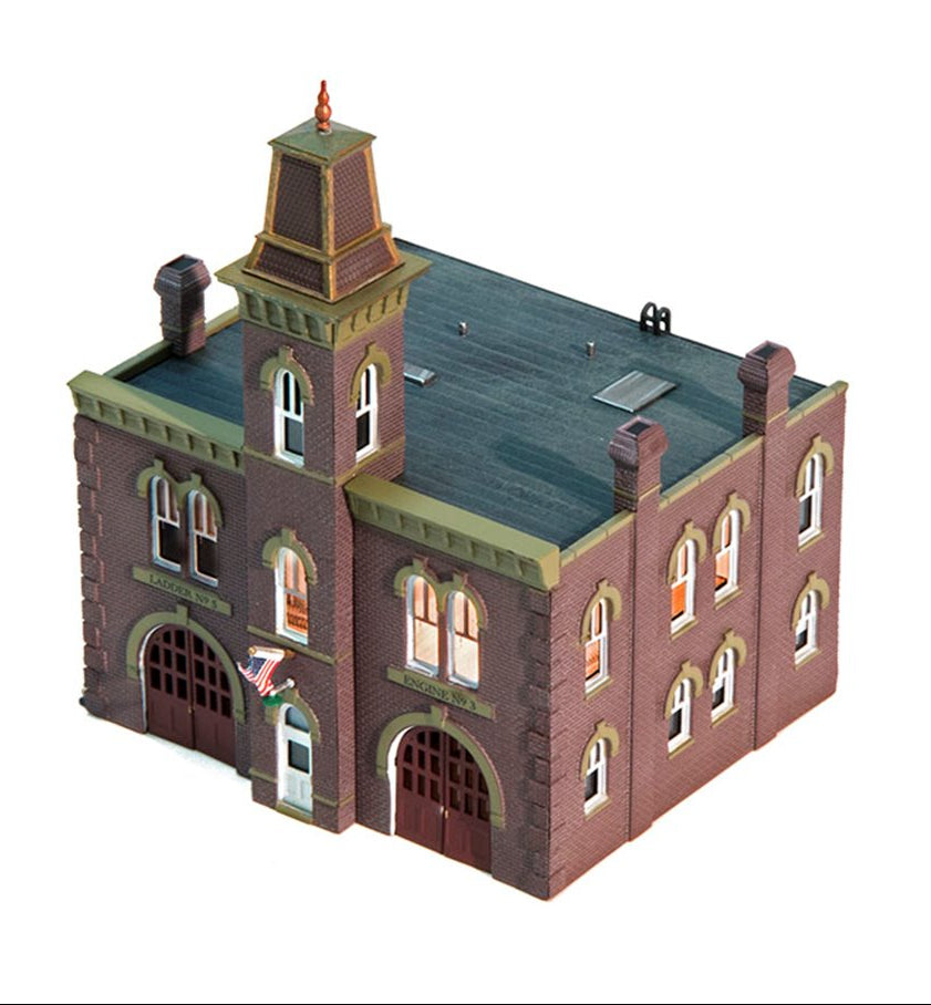 It's a three-alarm fire, but your layout residents are sure to receive a quick response from firefighters answering the call. Building details include hinged doors that you can open or close, a fire escape ladder, drainage, an electrical box, conduit and more! Exquisite and ornate architectural details highlight this Italianate styled Firehouse. See photos for footprint.