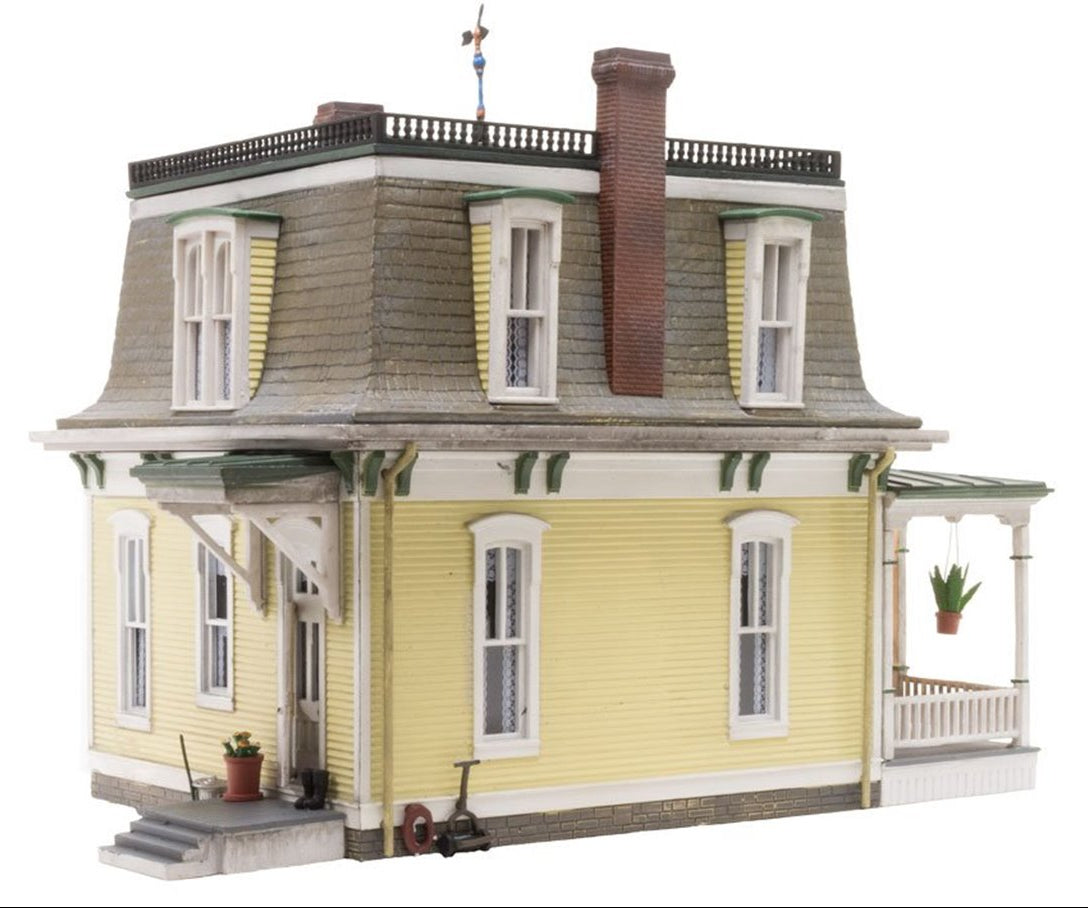 This Home Sweet Home features classic Victorian architecture housed under a characteristic Mansard roof, a vintage weather vane, and intricately styled dormers complete with flowered window boxes. Building details include bracketed eaves, a back porch with a propped open screen door, storm cellar, woodpile, propane tank and more! See photos for footprint.