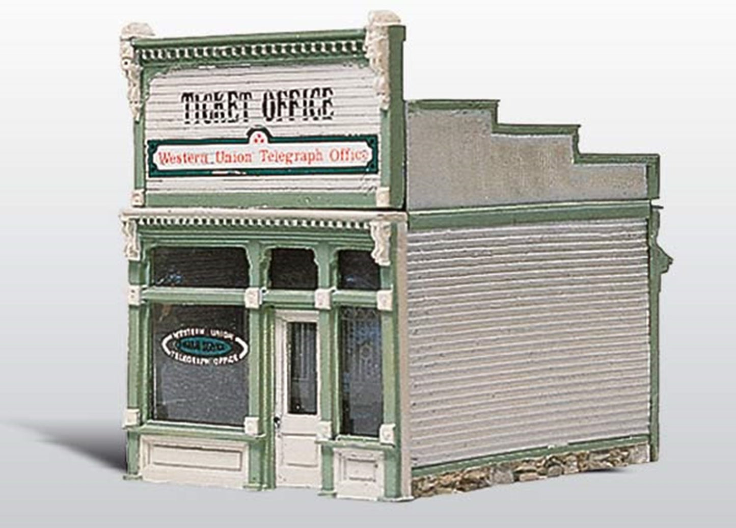 Place this small office building near railroad tracks or a bustling city street. The building is modelled after Western Union Telegraph offices that saw a lot of traffic.