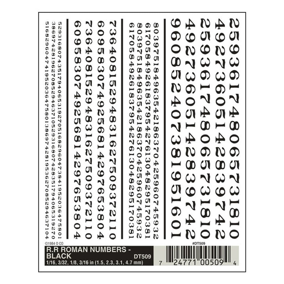 Woodland Scenics WDT509 DT509 WOODLAND SCENICS - Decals - R.R. Roman Numbers - Black