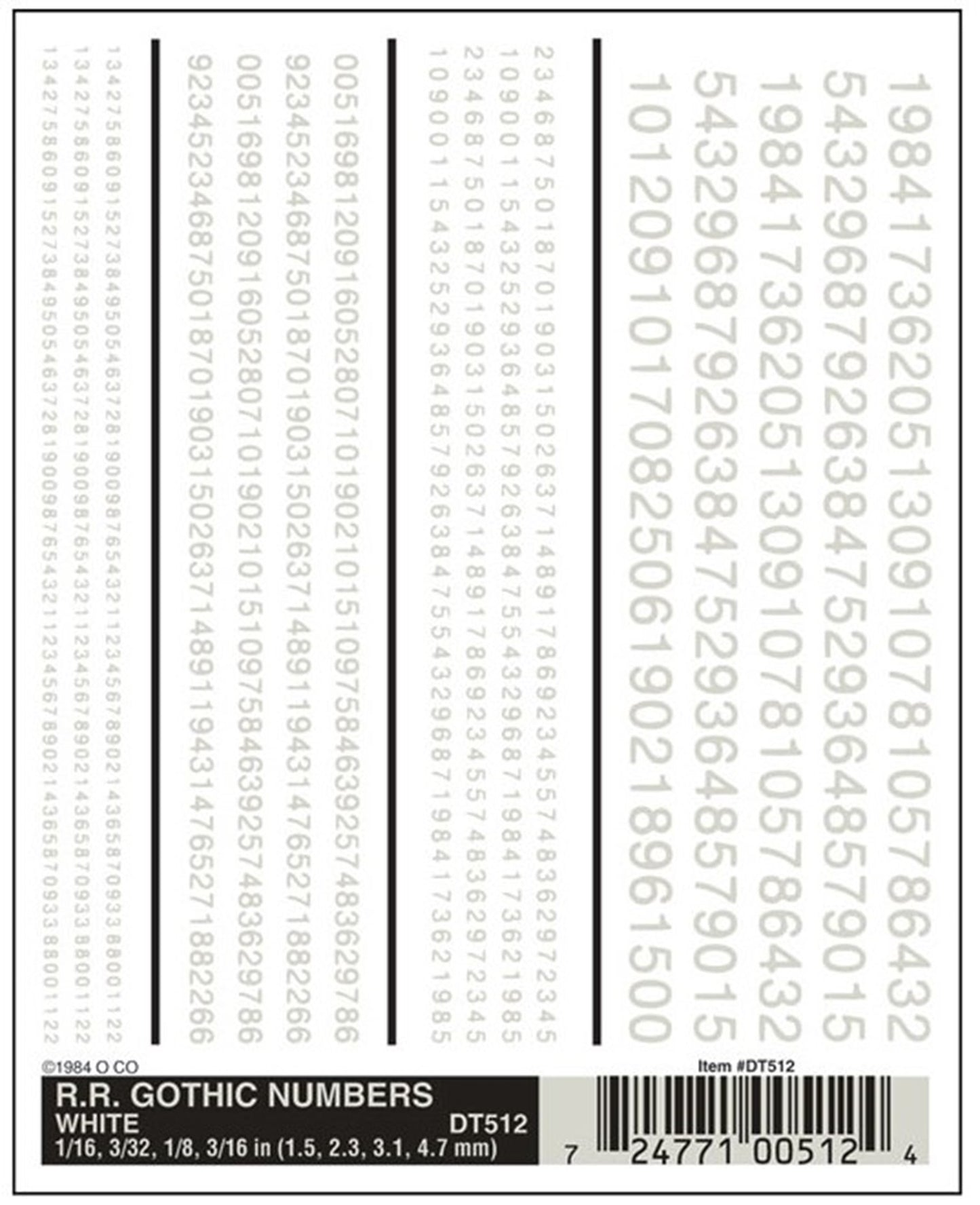 Woodland Scenics WDT512 DT512 WOODLAND SCENICS - Decals - R.R. Gothic Numbers - White
