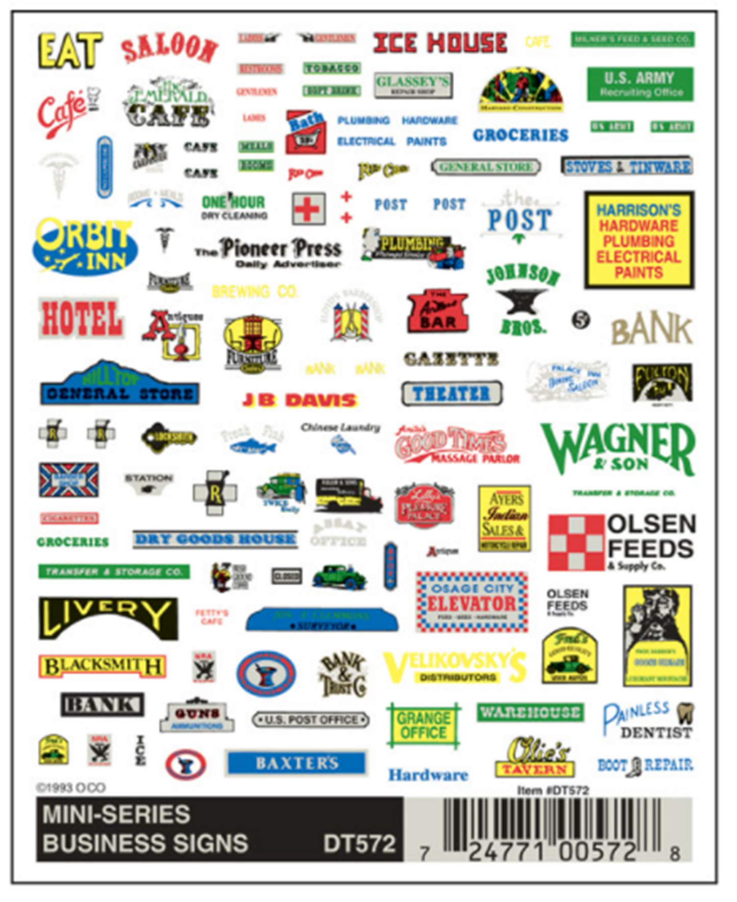 Woodland Scenics WDT572 DT572 WOODLAND SCENICS - Decals - Mini-Series Business Signs