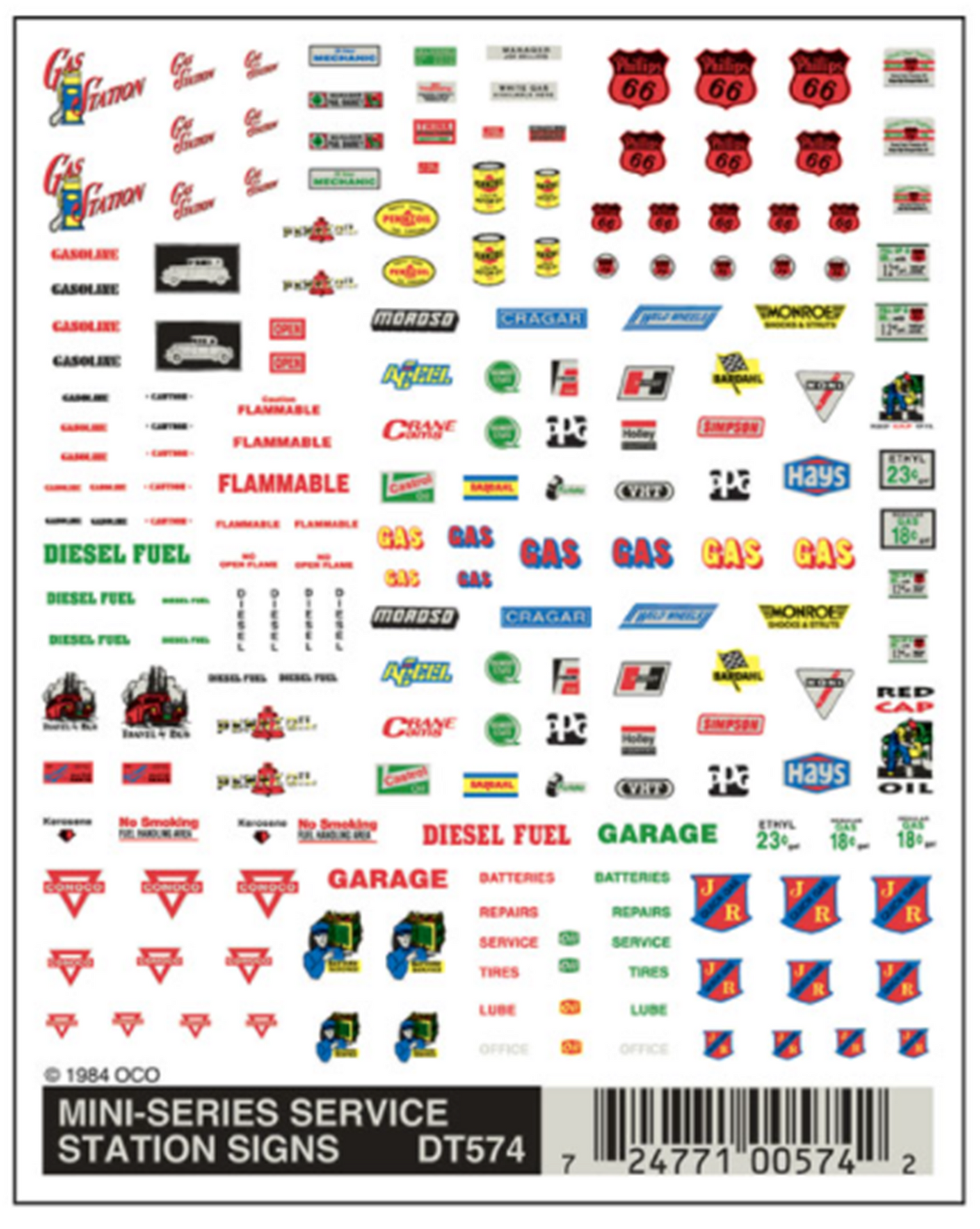 Woodland Scenics WDT574 DT574 WOODLAND SCENICS - Decals - Mini-Series Service Station Signs