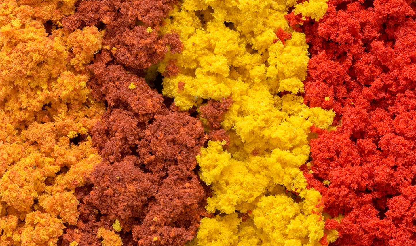 Model medium to high ground covers, create variation in trees, shrubs and bushes, and landscape hillsides. Use for all scales. Colourfast and blends naturally with other foliage.