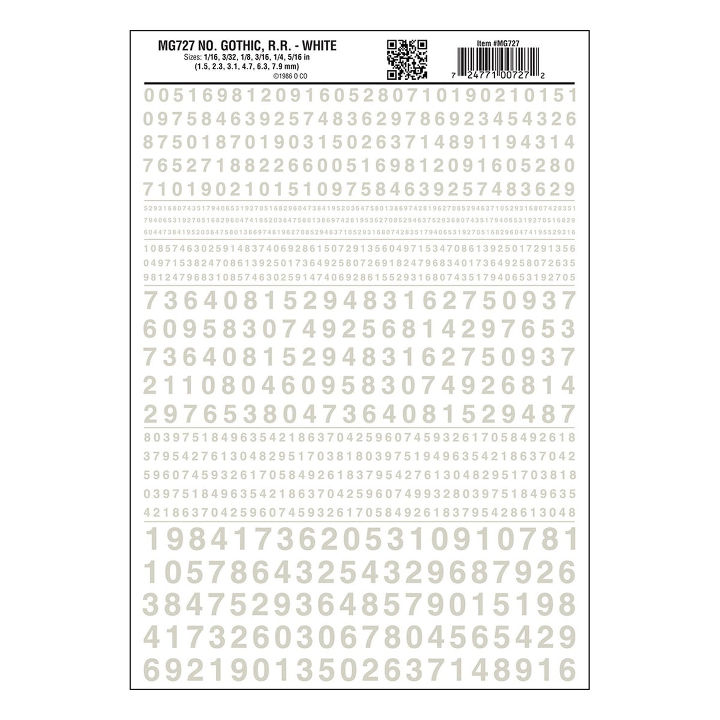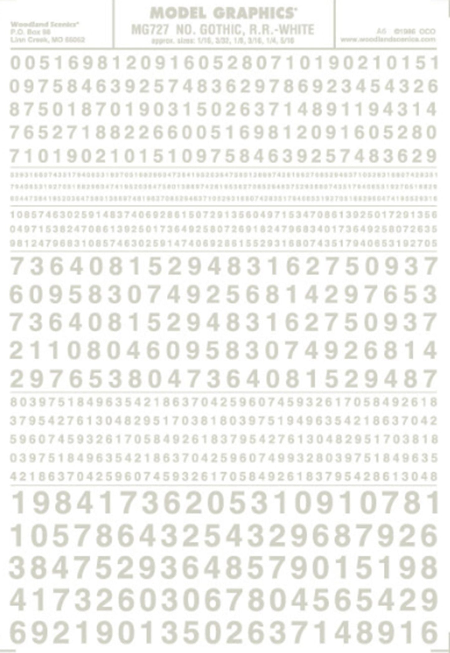 Woodland Scenics WMG727 MG727 Numbers Gothic RR White