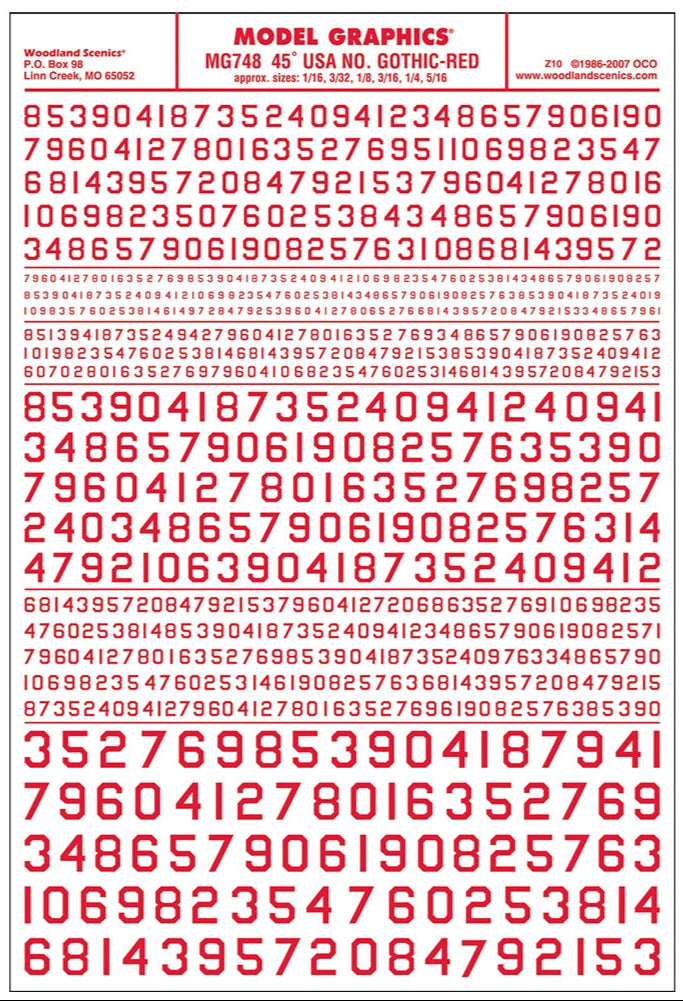 Woodland Scenics WMG748 45° USA Gothic Numbers Red