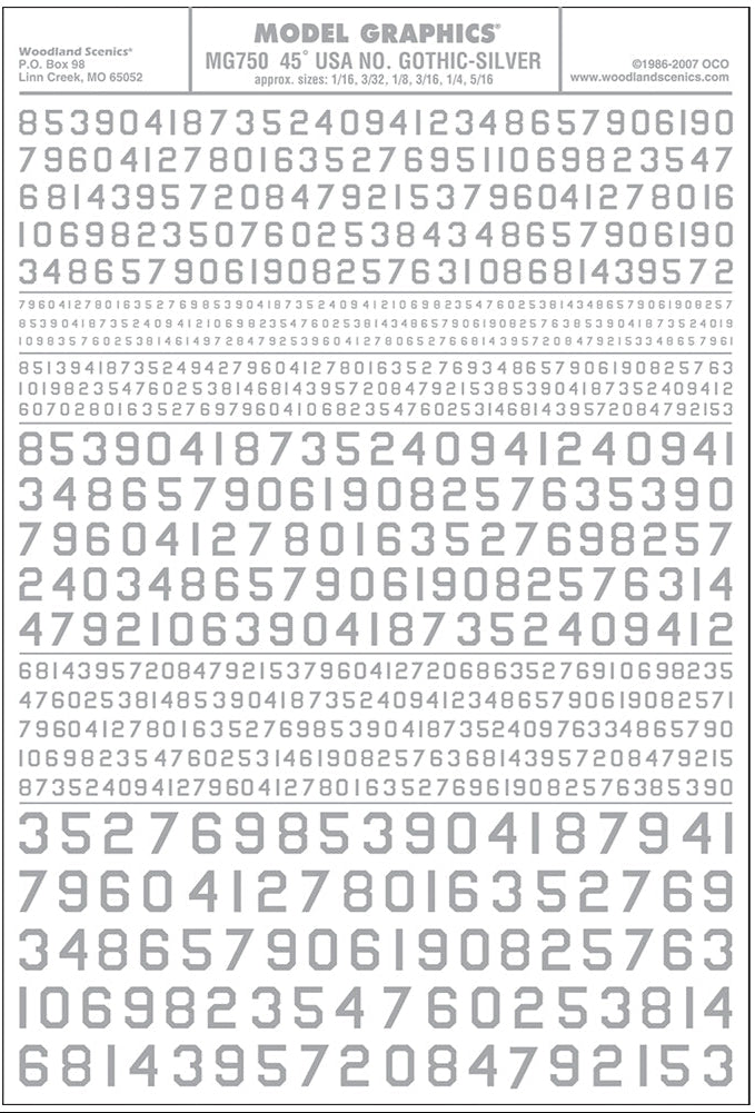 Woodland Scenics WMG750 45° USA Gothic Numbers Silver