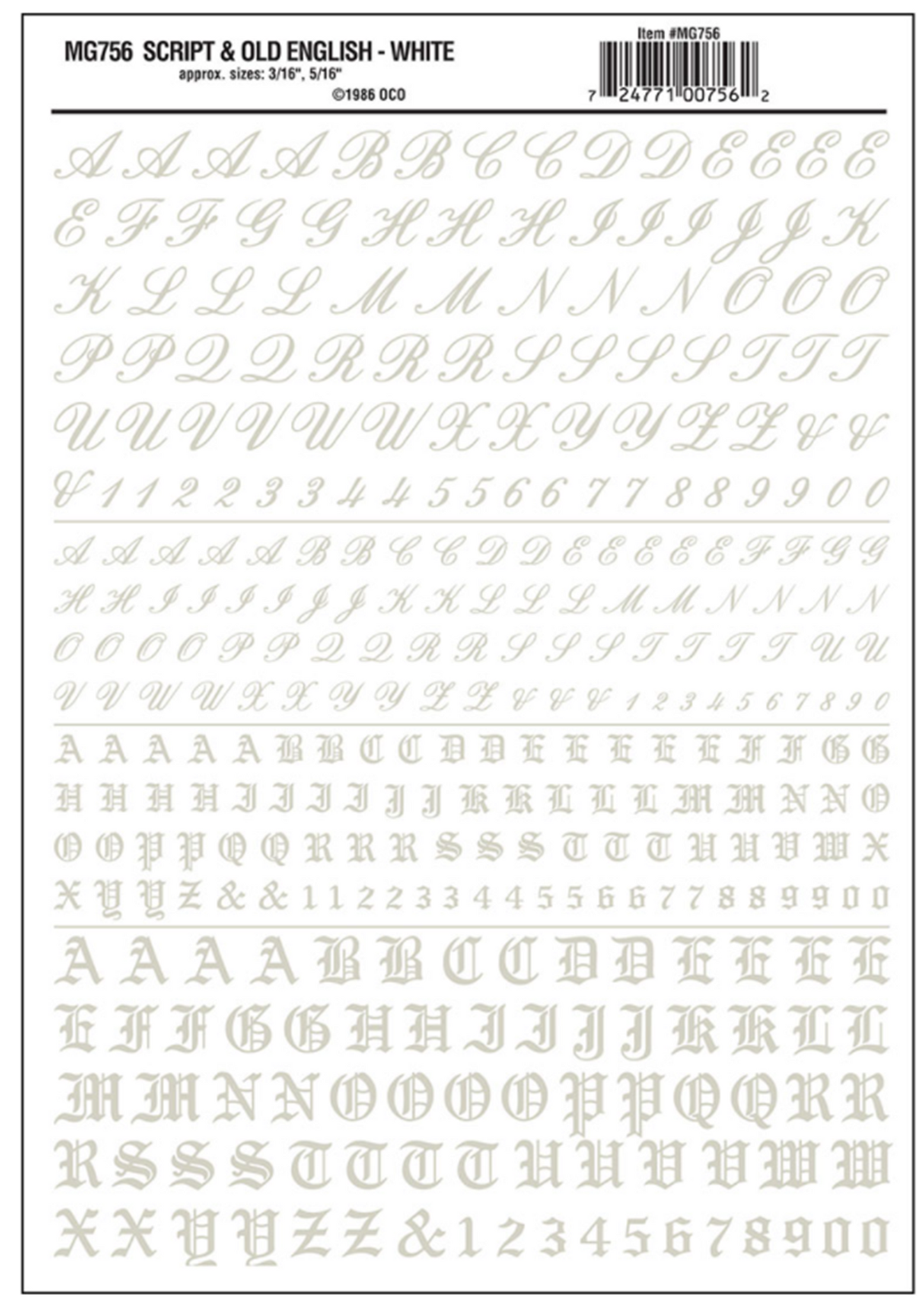 Woodland Scenics WMG756 MG756 WOODLAND SCENICS - Decals - Script & Old English White