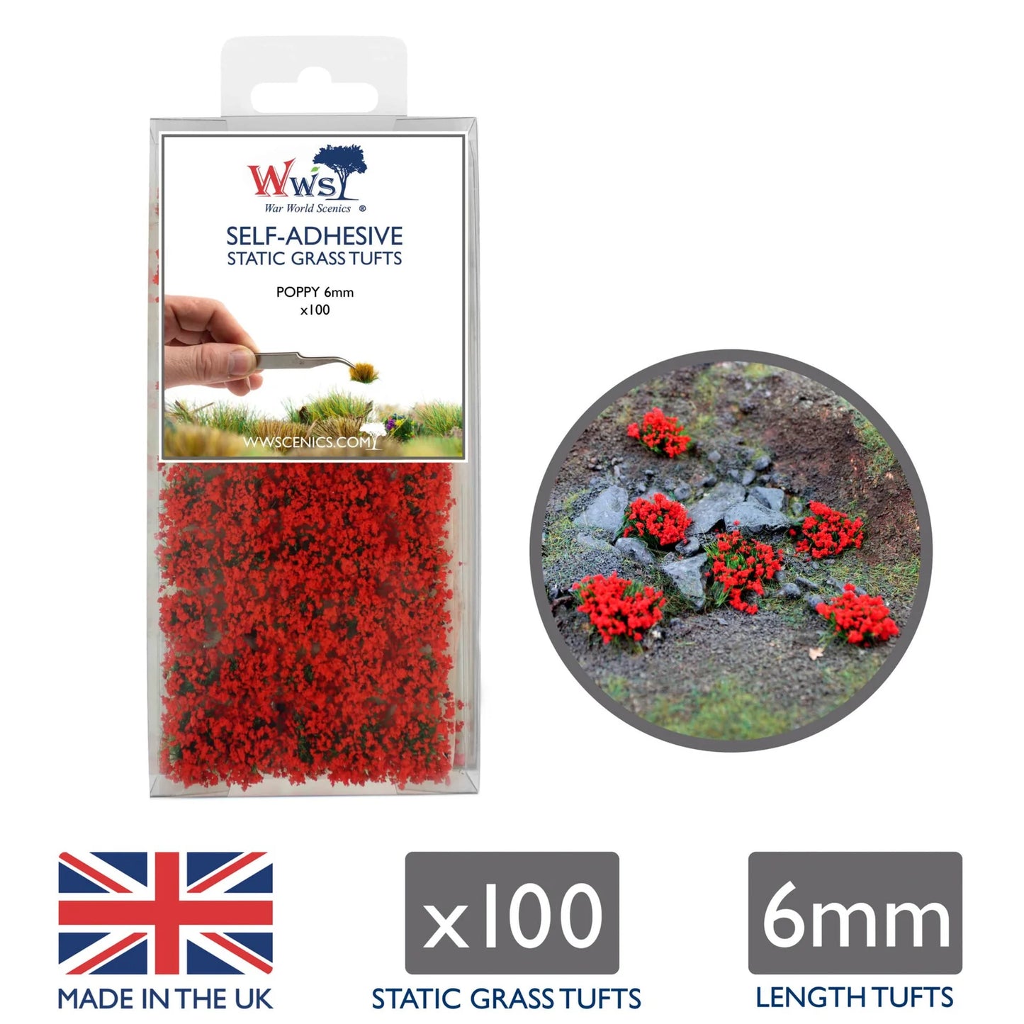 - TUFTS – 100 x Poppy Self-Adhesive Static Grass Tufts by War World Scenics